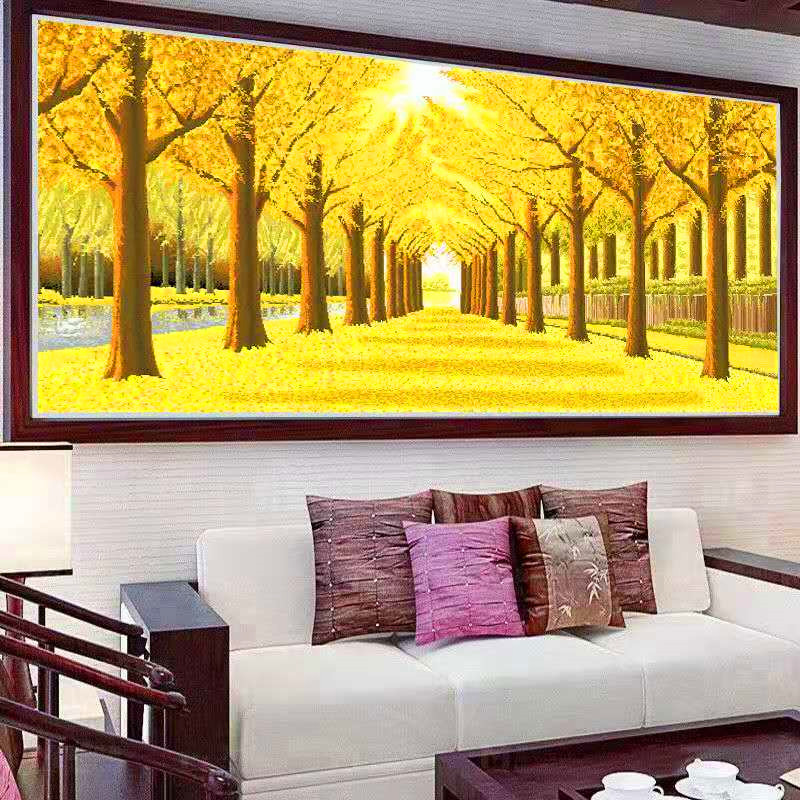 モナリサ十字刺繍2025新型黄金満地パノラマ線刺繍客間大幅画風景シンプル現代
