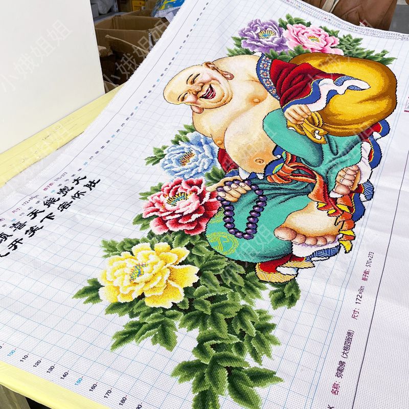 弥勒仏の松クロスステッチ完成品、フレームなし、手刺繍済み、2025年新作、リビングルームでいつも笑顔