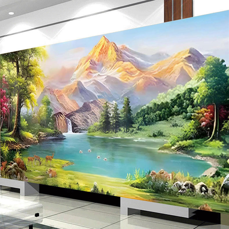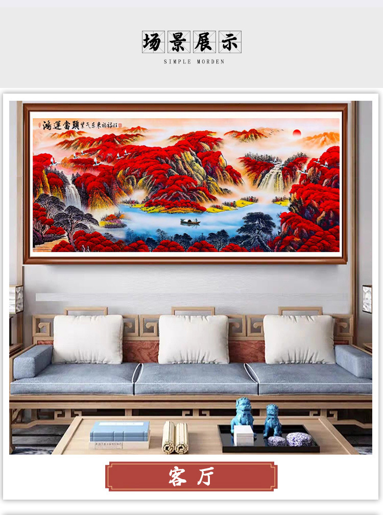 材料は未完成品です - 仕立て済み糸、幸運のクロスステッチ、2025年新作糸刺繍、リビングルームの風景画、大きなサイズ
