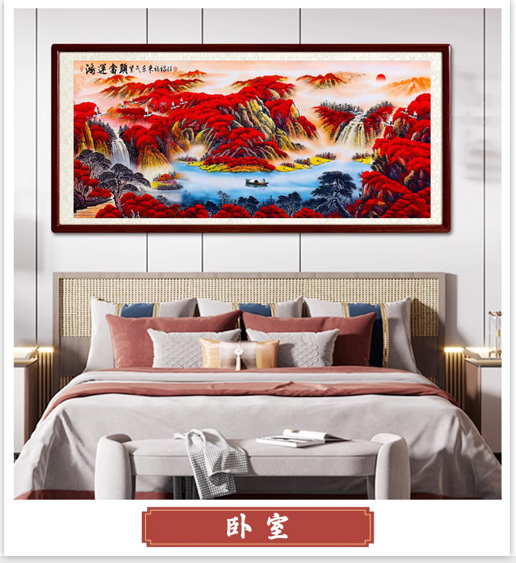 背靠金山聚宝盆十字绣2025新款高端客厅高级感大幅风景山水画刺绣