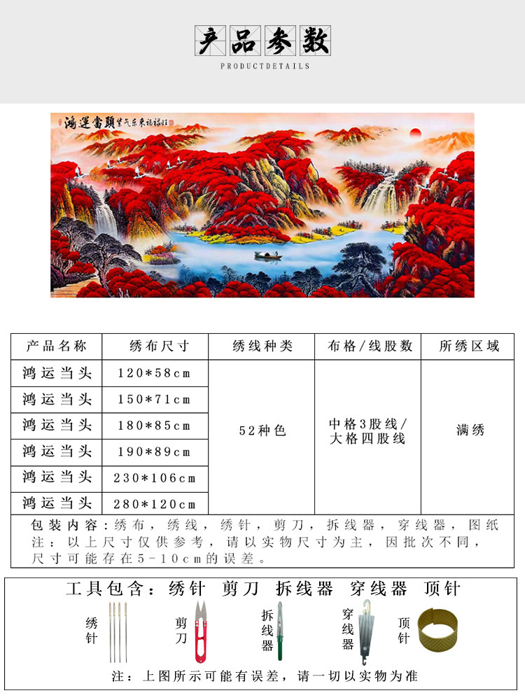 万里江山図十字刺繍2025年新作線刺繍高級感客間山水風景画手作り刺繍