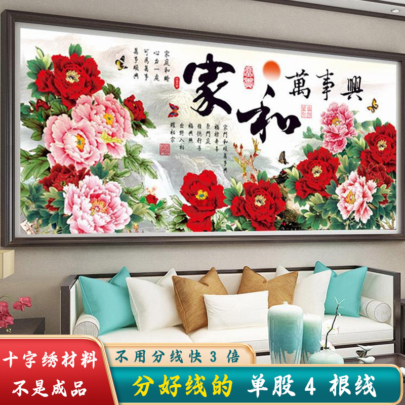 材料非完成品-分好線家と万事興十字刺繍2024新型客間牡丹花卉大幅