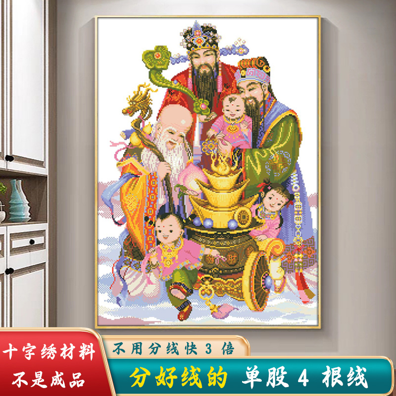 サムスン高照富と長寿クロスステッチ中央絵画富の神絵玄関リビングルーム 2025 新しい手作り糸刺繍小物