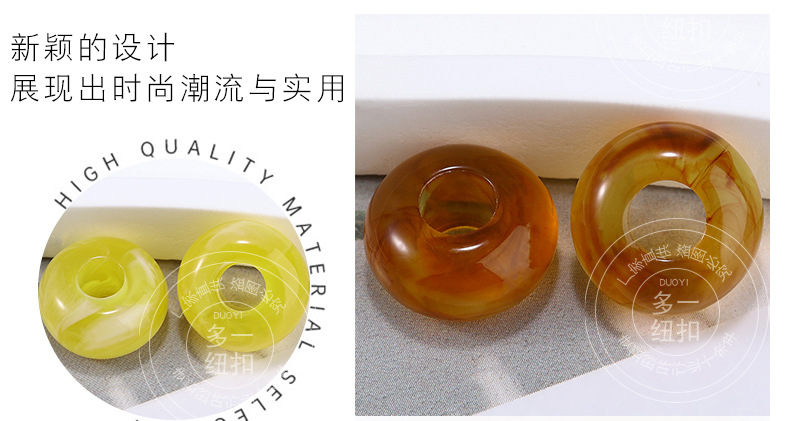 树脂大孔珠扁圆晕染直孔珠挂件服装泳装配饰吊坠散珠DIY饰品配件