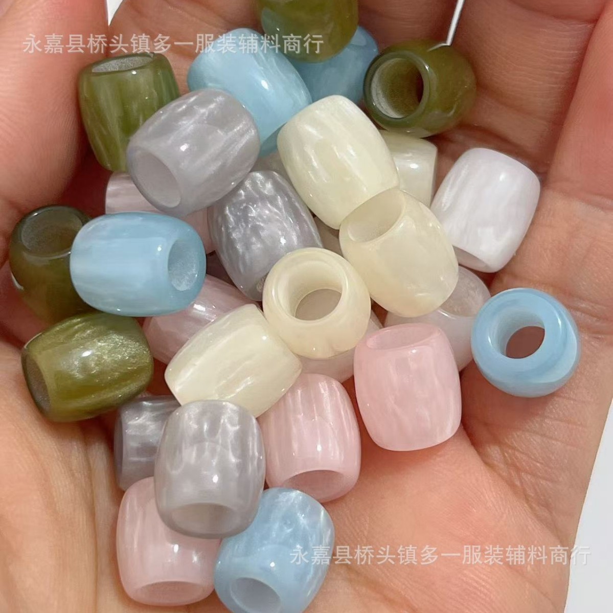 新款12*10mm树脂大孔珠光桶珠DIY串珠服饰绳扣项链包链头饰绳配件