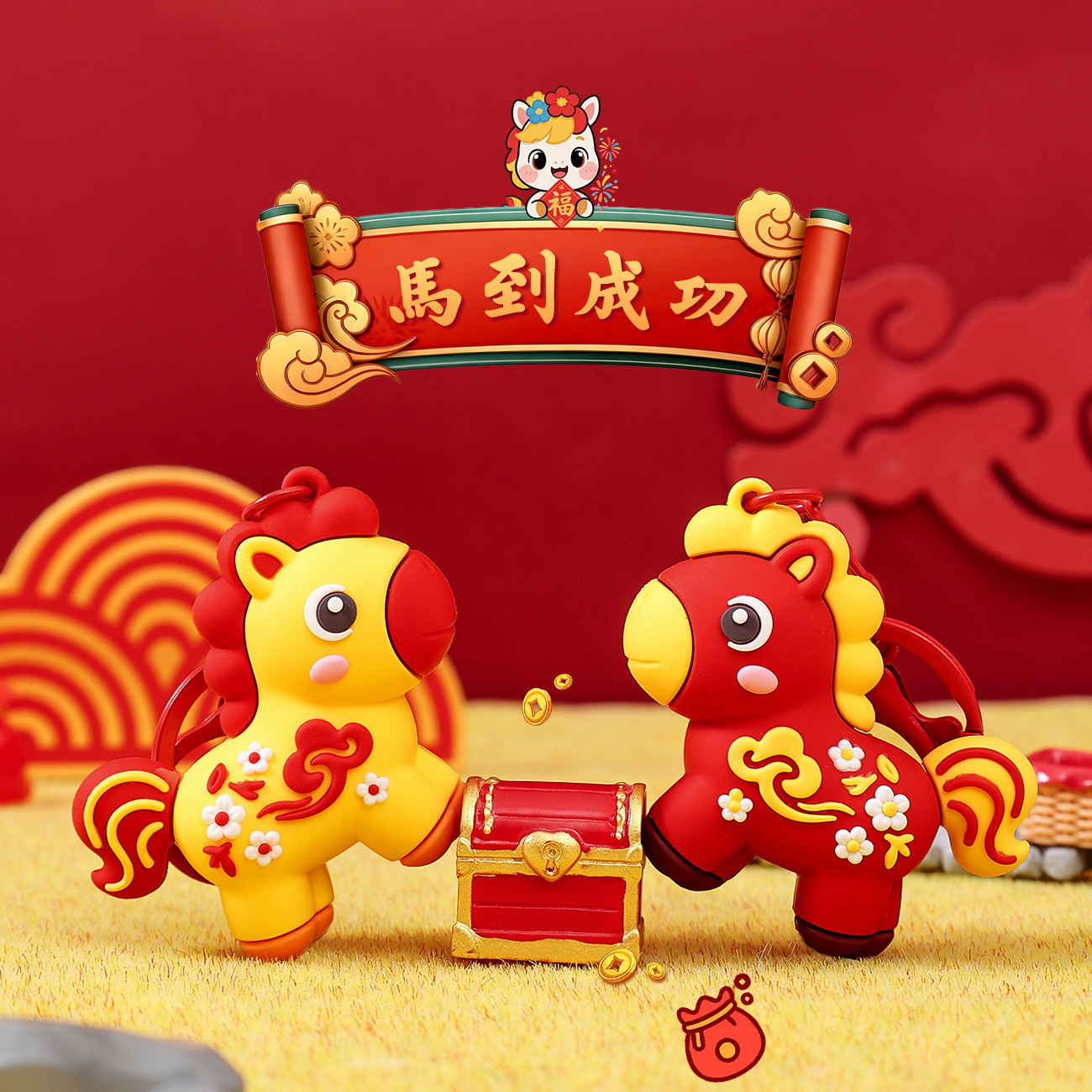 2026年创意马年马上有钱钥匙扣卡通可爱生肖公仔包包挂饰马年挂件