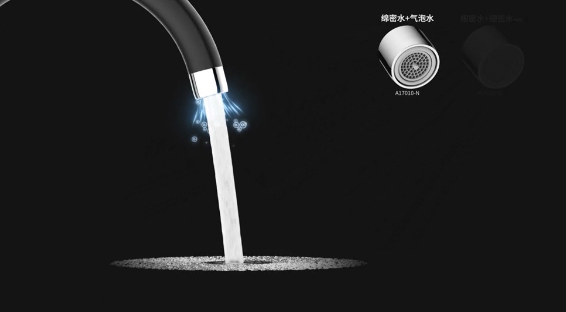 蛇口の吐水口には内蔵式エアバブラーと隠しフィルターエレメントがあり、エアバブラーは内蔵されており、多方向に調整可能です。