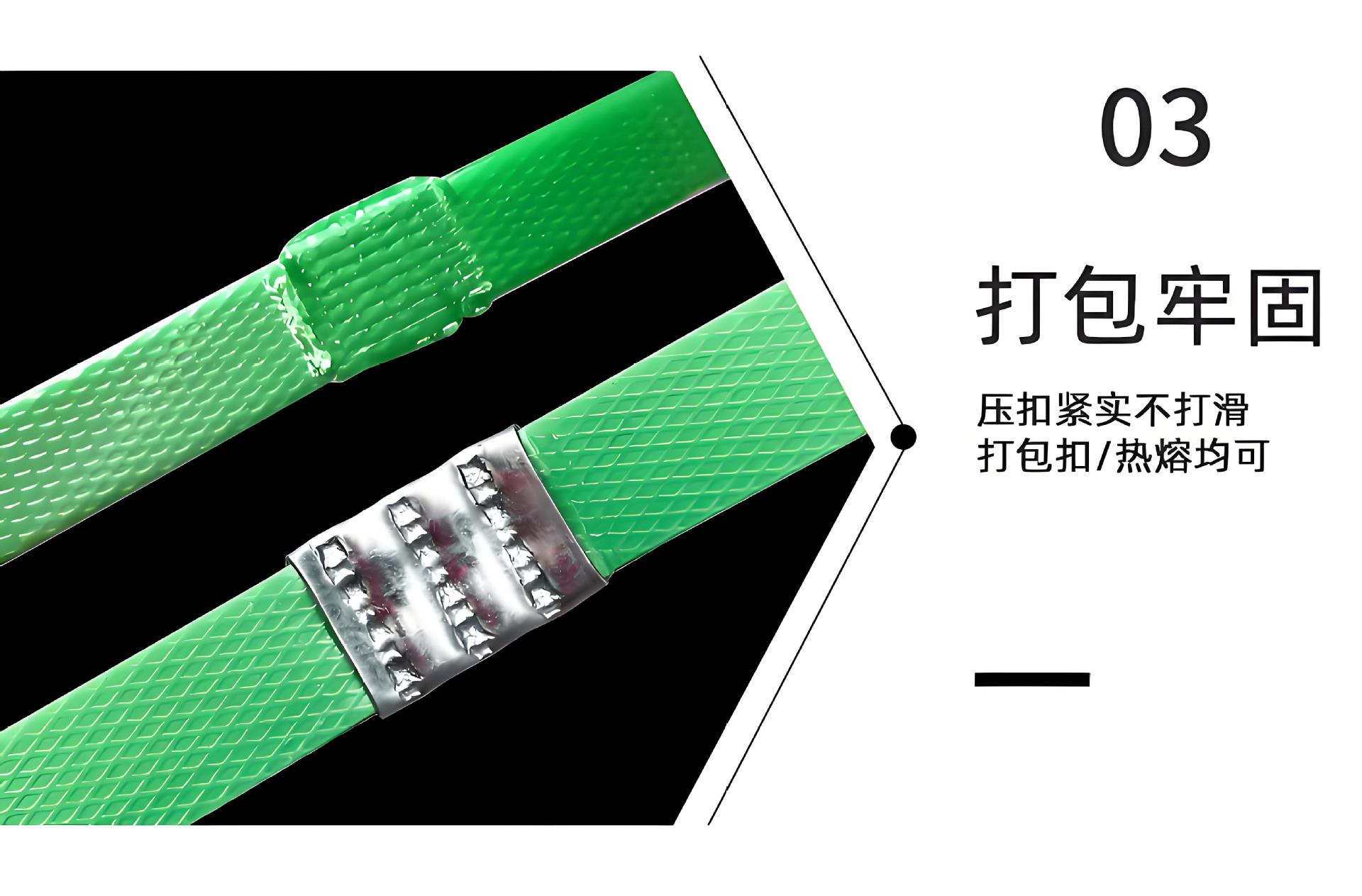PET塑钢打包带捆扎带1608厂家批发可印字LOGO打包扣物流石材包装