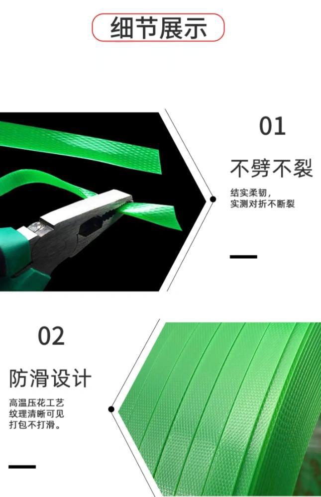 ペットプラスチックスチールバンド 1608 バインディングタイ物流輸送柔軟な卸売マニュアルグリーンバンドルプラスチックスチールバンド
