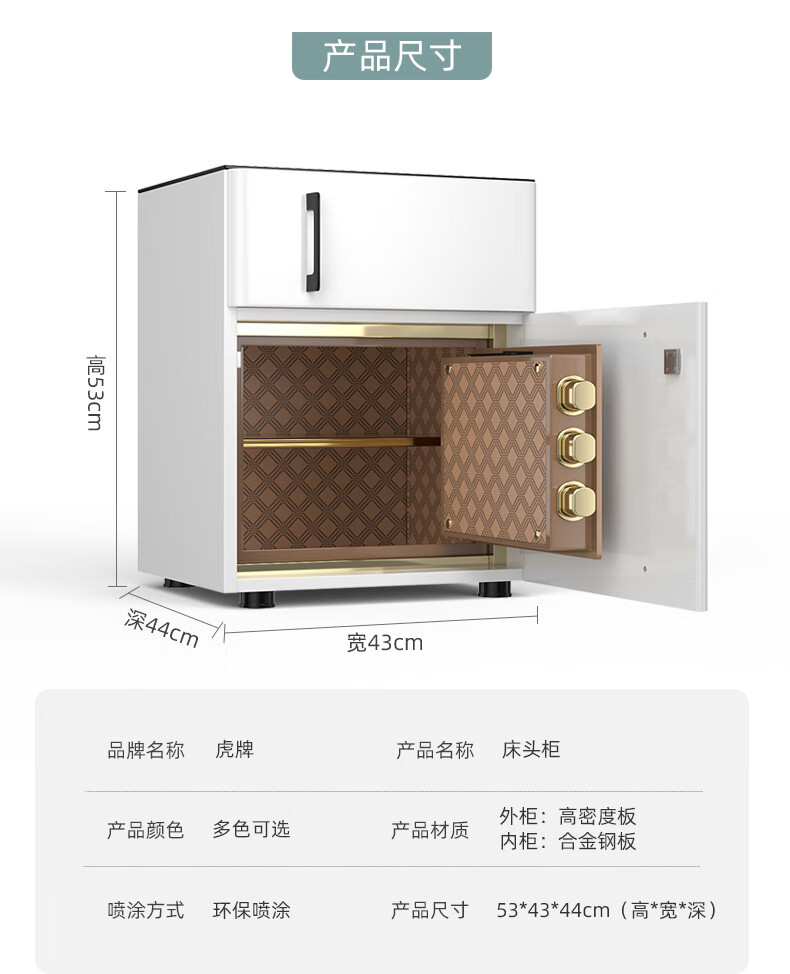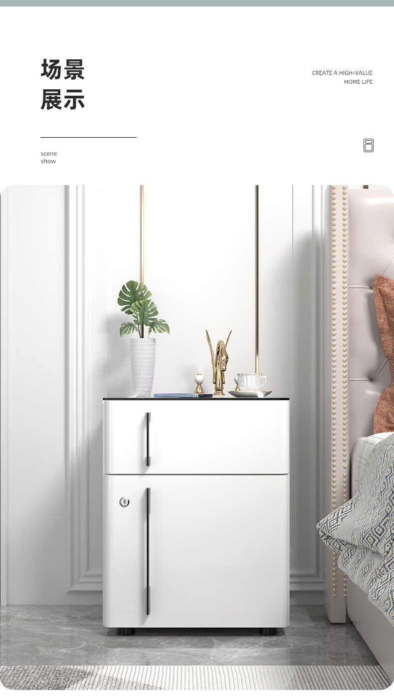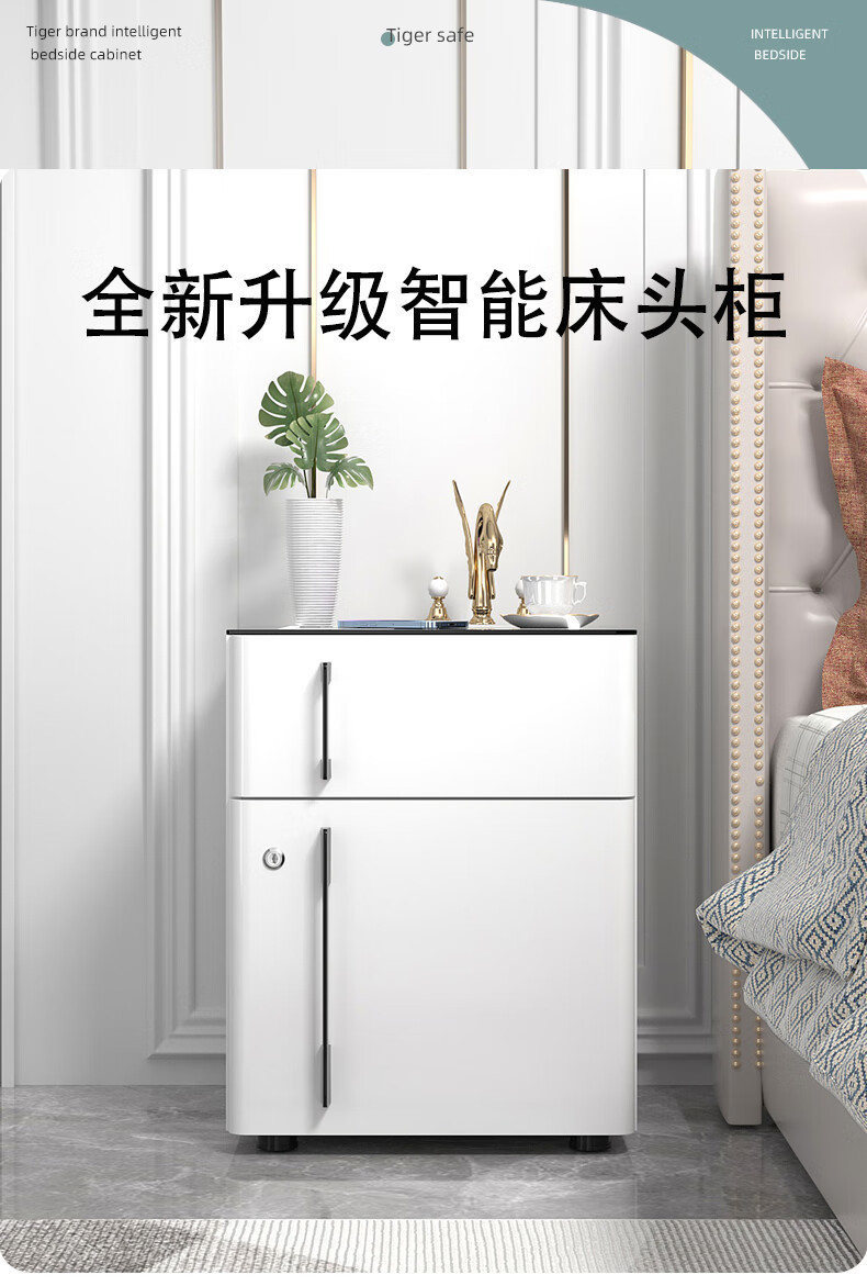 タイガー ベッドサイドキャビネット 隠し保管キャビネット ファイルキャビネット オフィスキャビネット 53cm パスワードモデル ホワイト