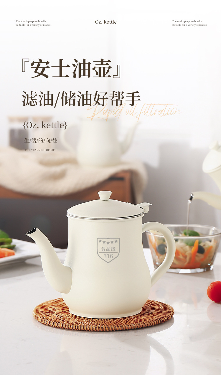 ステンレス製オイルポット、乳白色オンスポット、家庭用醤油ポット、油がこびりつきにくいキッチンオイルポット、蓋とフィルター付きオイルボトル