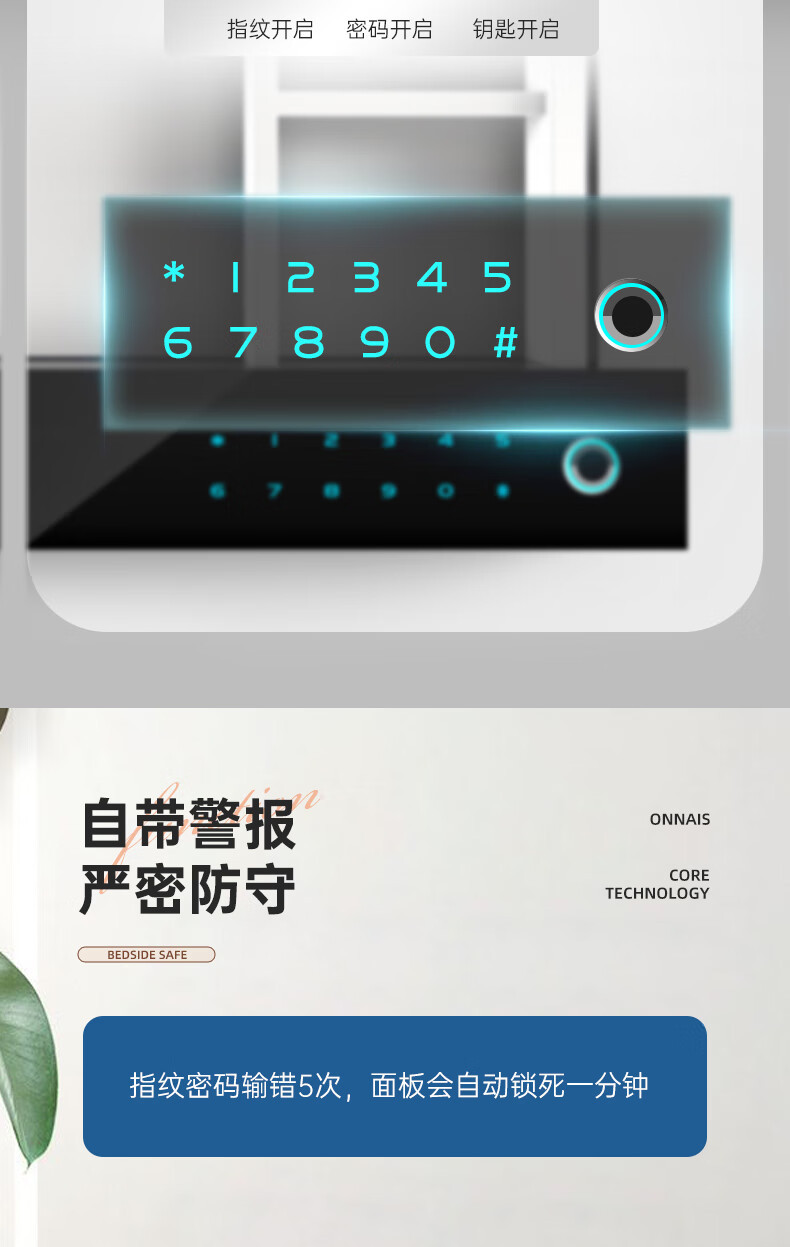ONNAIS ONNAIS 2024 セーフ ベッドサイド キャビネット 家庭用小型引き出し金庫 1