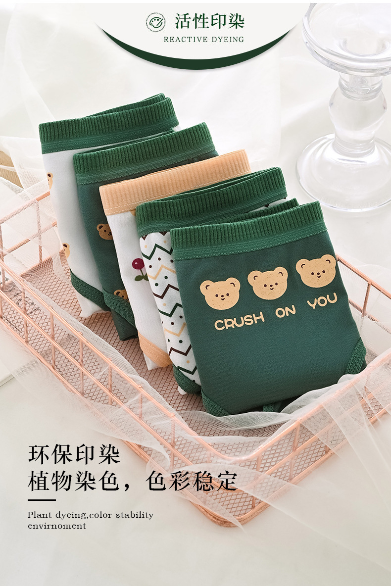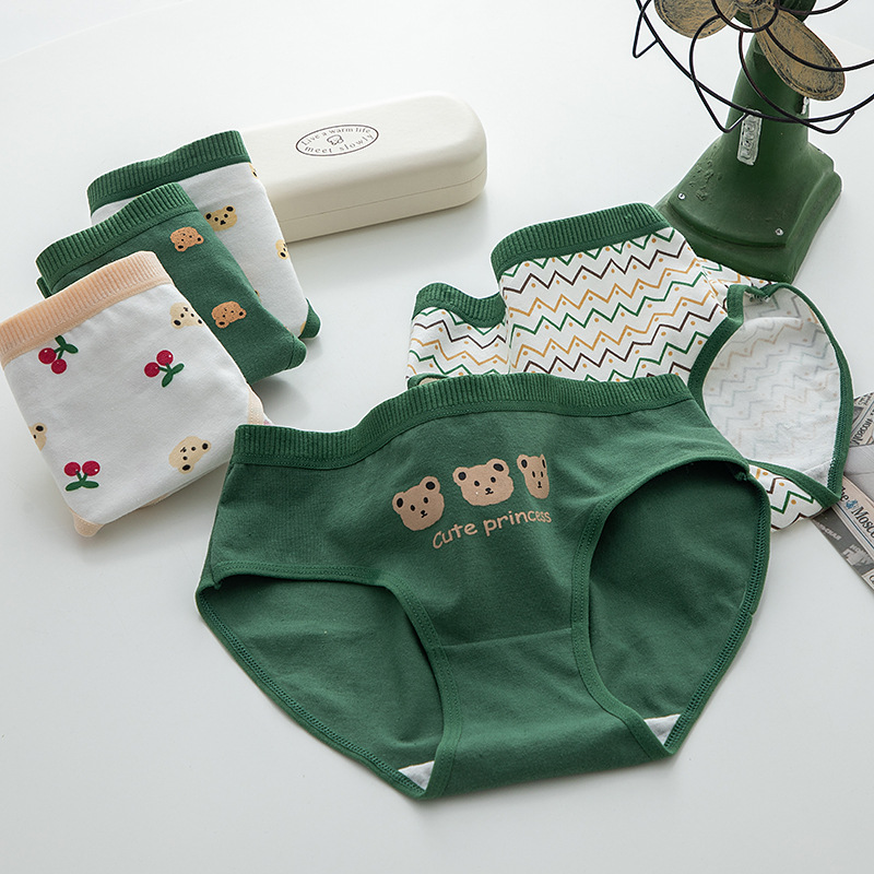 日本のかわいいアニメの緑の熊の女性の下着の純綿の女性の綿の股の中で腰の学生の少女の下着の卸売り