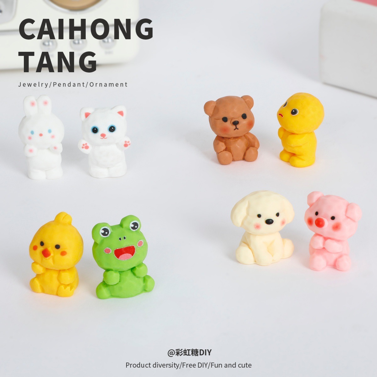 卡通树脂萌趣动物大全实色 创意桌面摆件DIY饰品配件混装批发