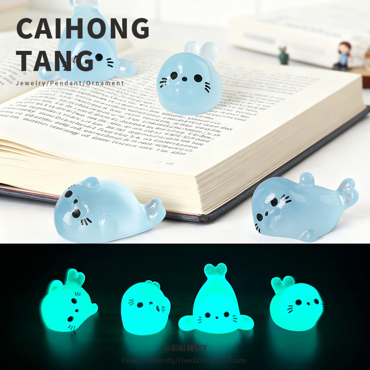 立体樹脂DIYアクセサリー 模造夜光アザラシ 新商品卸売 可愛いカラフル夜光小動物
