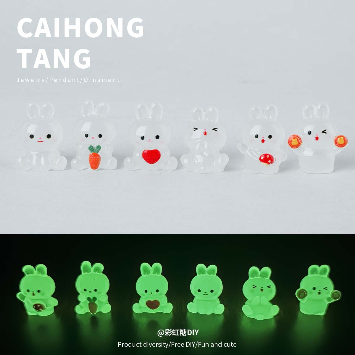 卡通创意立体夜光呆萌兔公仔 DIY创意挂件桌面摆件配件材料批发