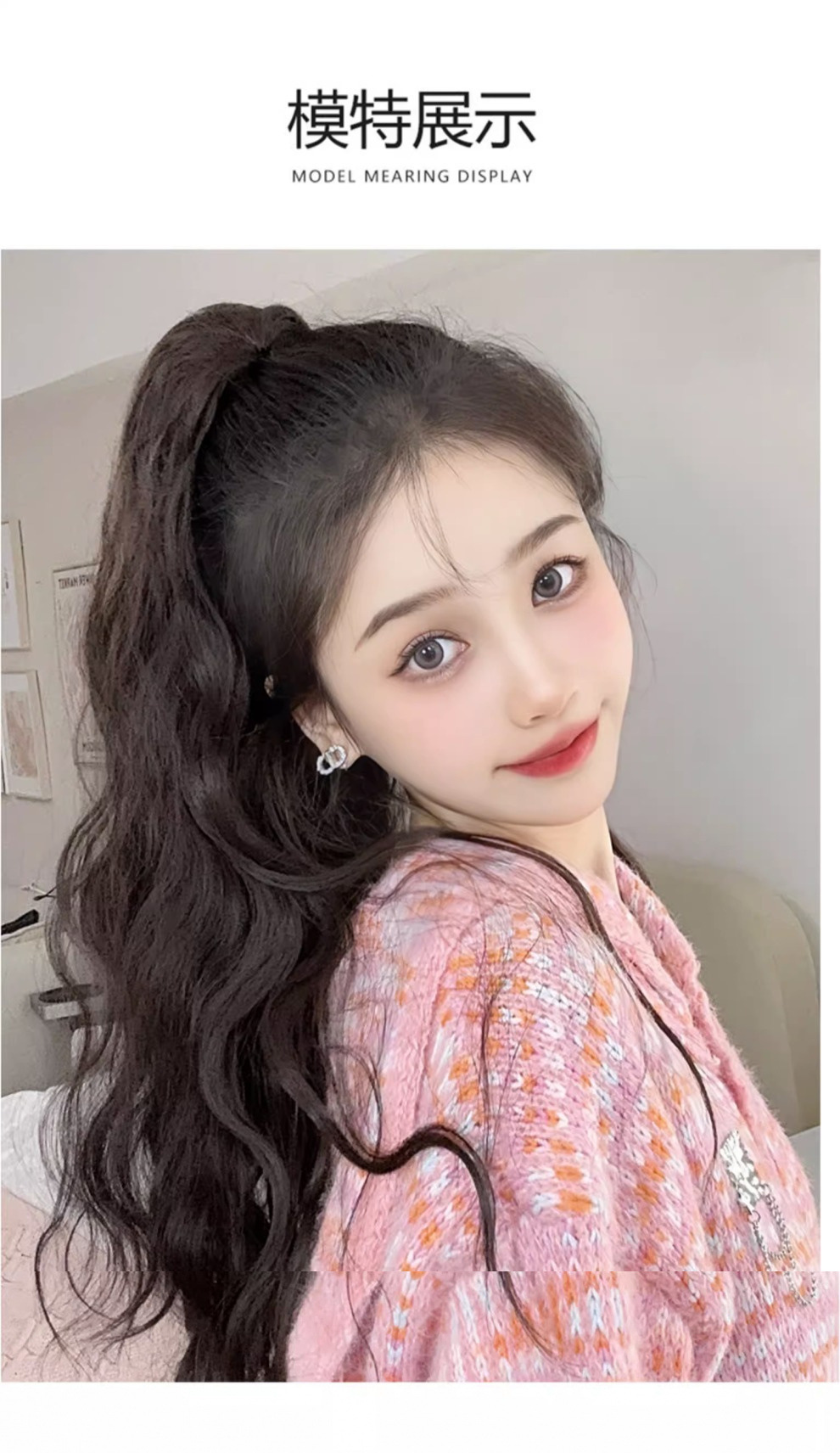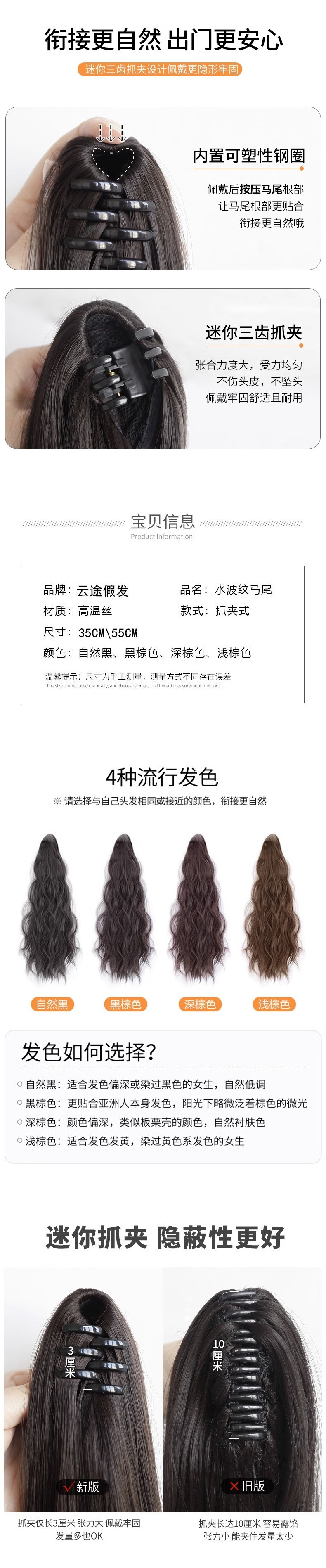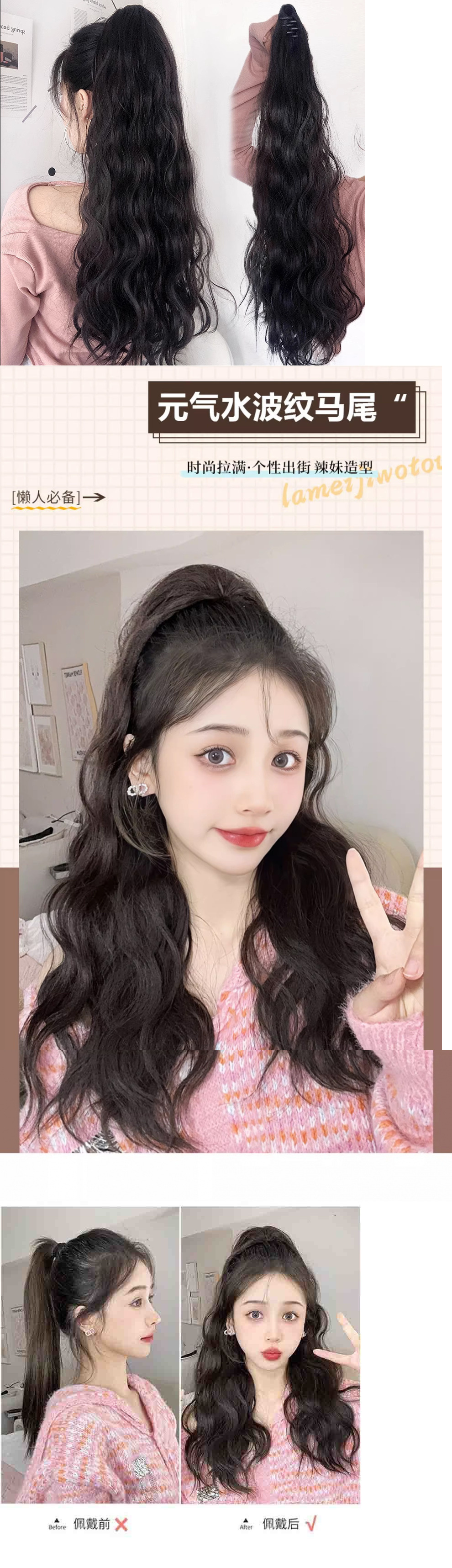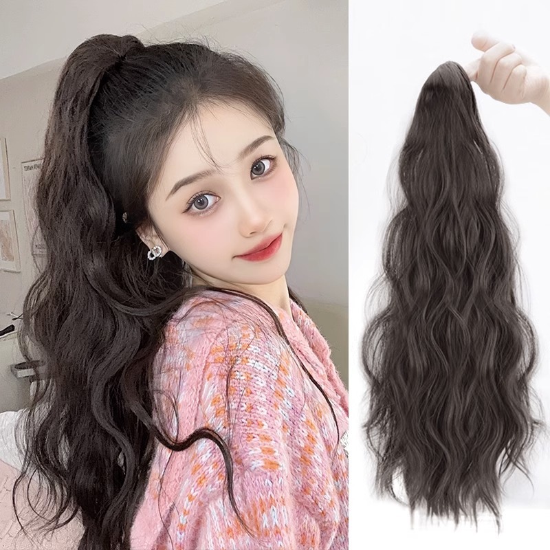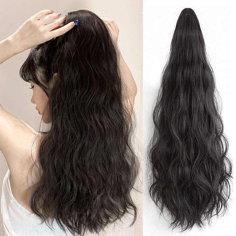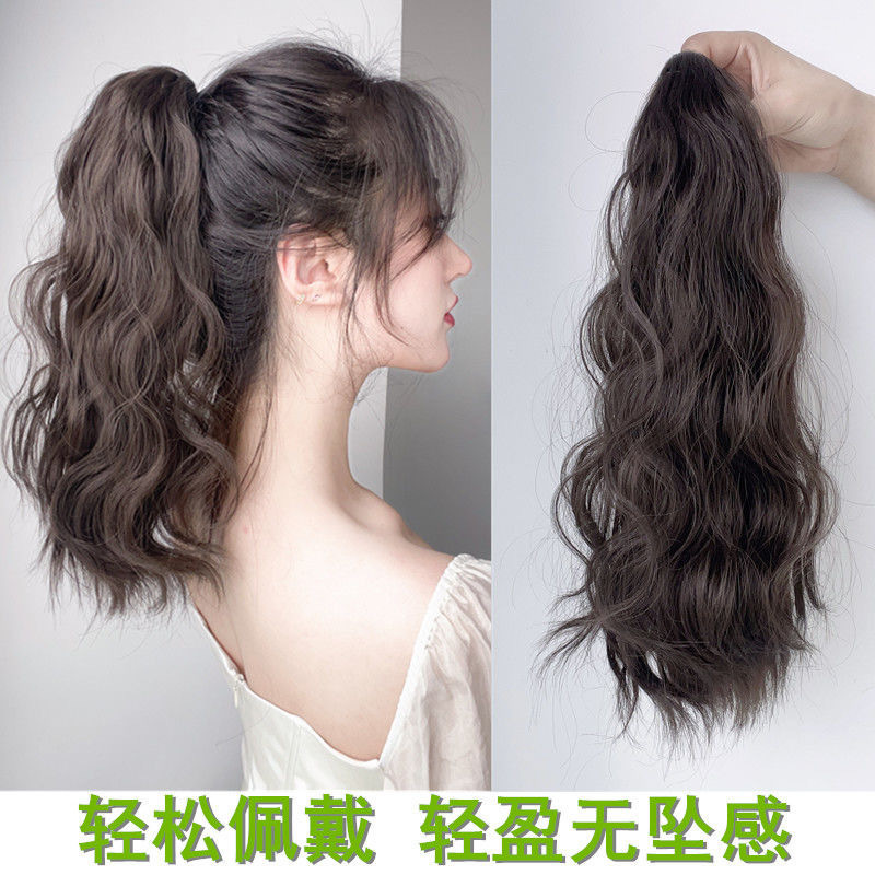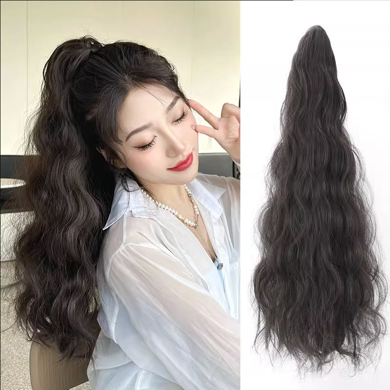 ポニーテール女性のナチュラル人工毛ロングヘアクリップ水の波紋ハイポニーテールふわふわインターネット有名人三つ編みオールインワン巻き毛ポニーテール