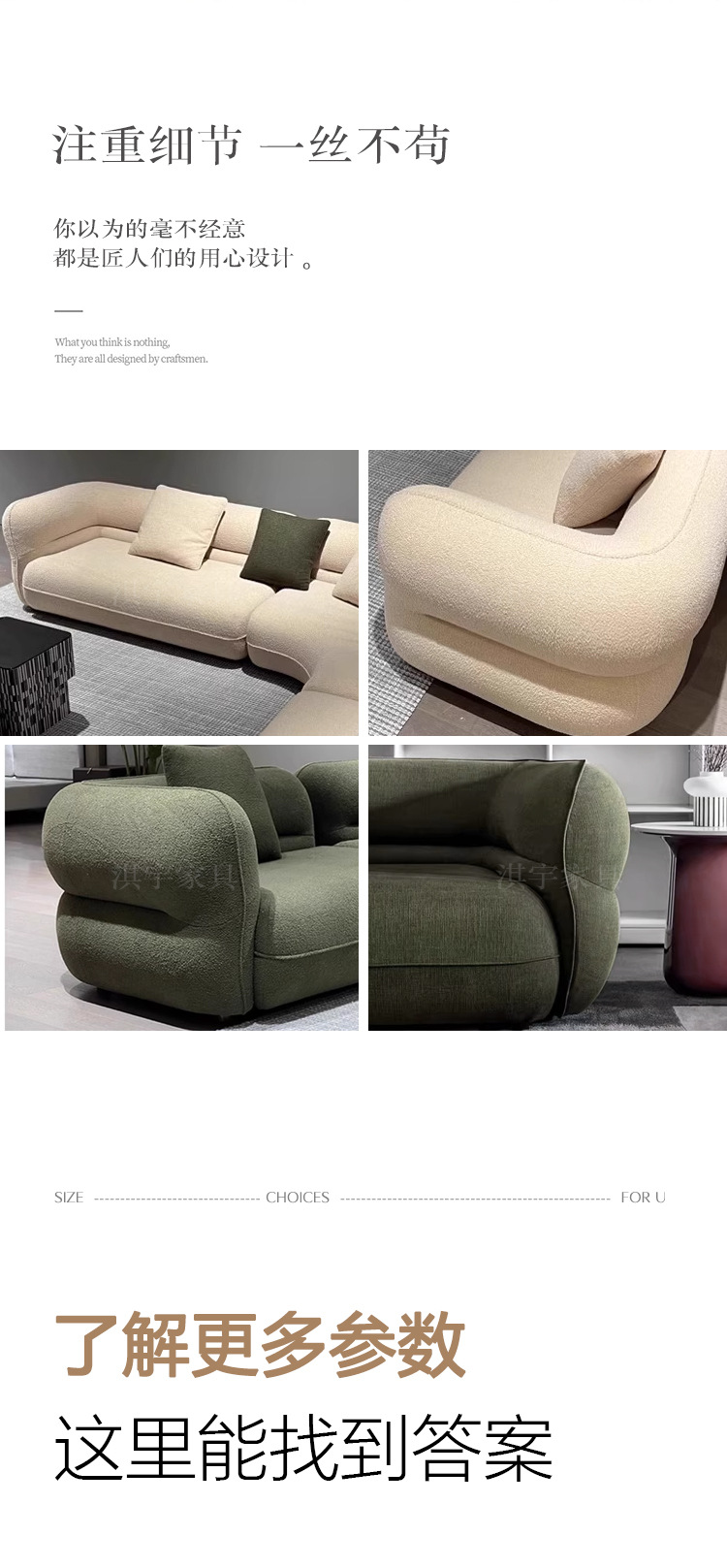 法式奶油风组合模块沙发绒布泰迪布波波球沙发创意客厅设计师家具