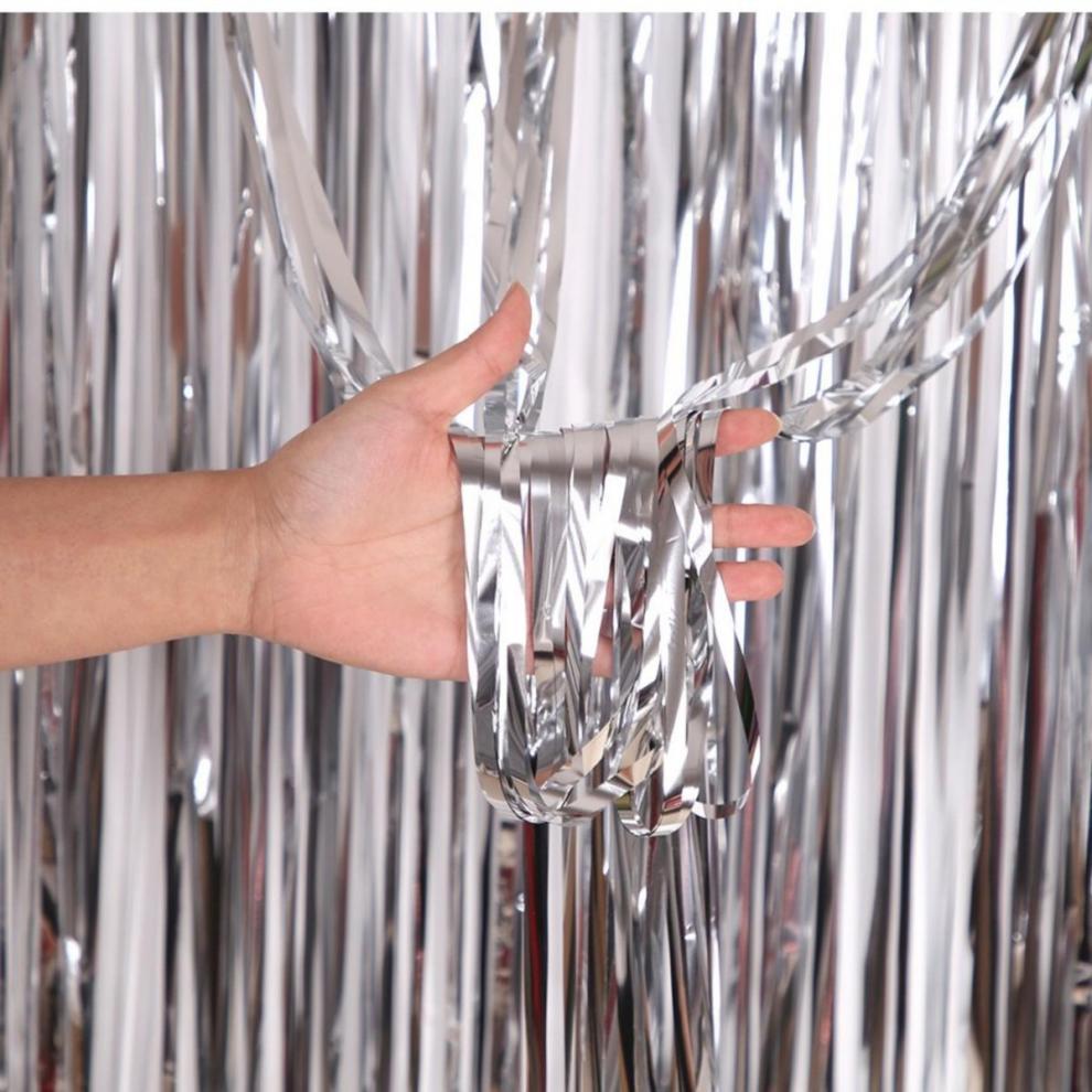 光沢のある純銀タッセルレインカーテン結婚式誕生日告白パーティー背景壁装飾ステージレイアウトカラーストリップ