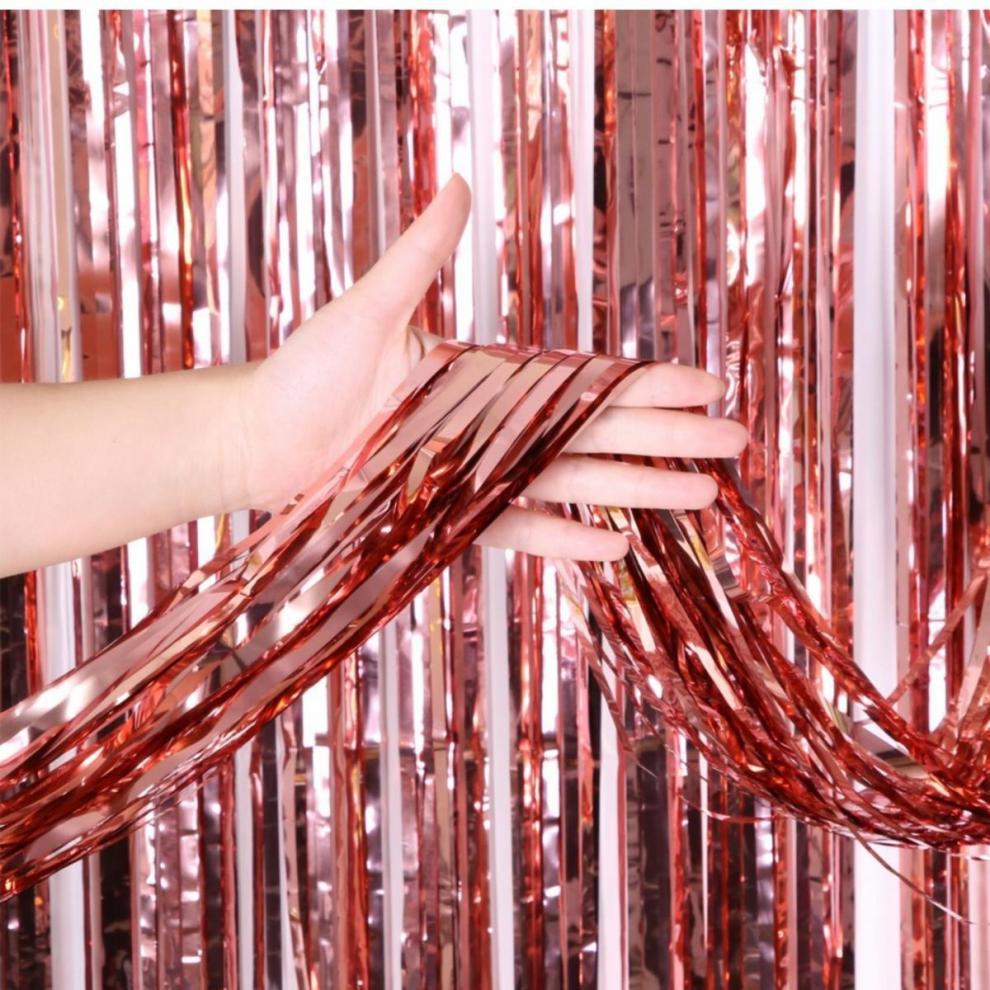 光沢のあるゴールドとシルバーのソリッドカラーストライプリボンタッセルレインカーテン結婚式誕生日パーティー背景壁装飾ステージレイアウト