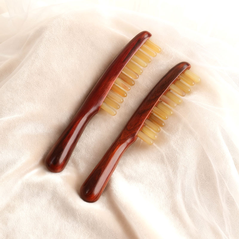 缎光紫檀羊角双排粗齿按摩梳随身携带经络梳厂家批发按摩器