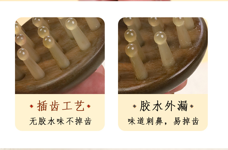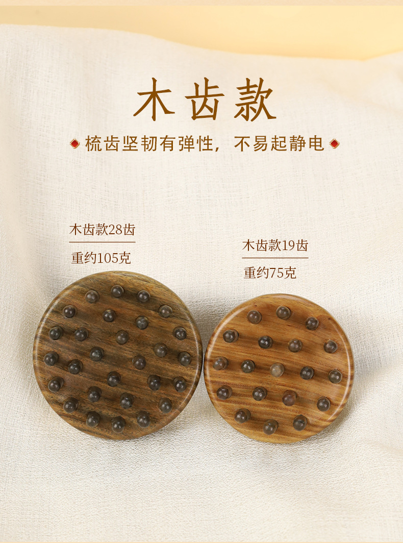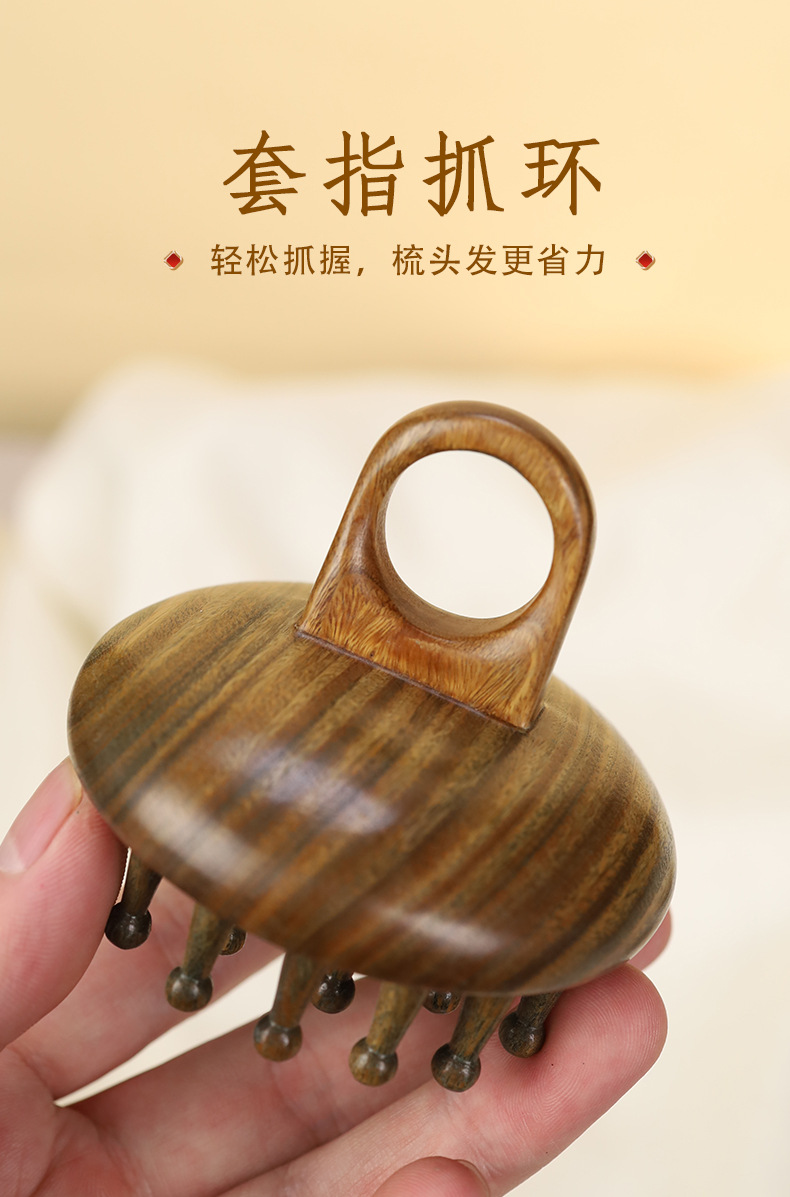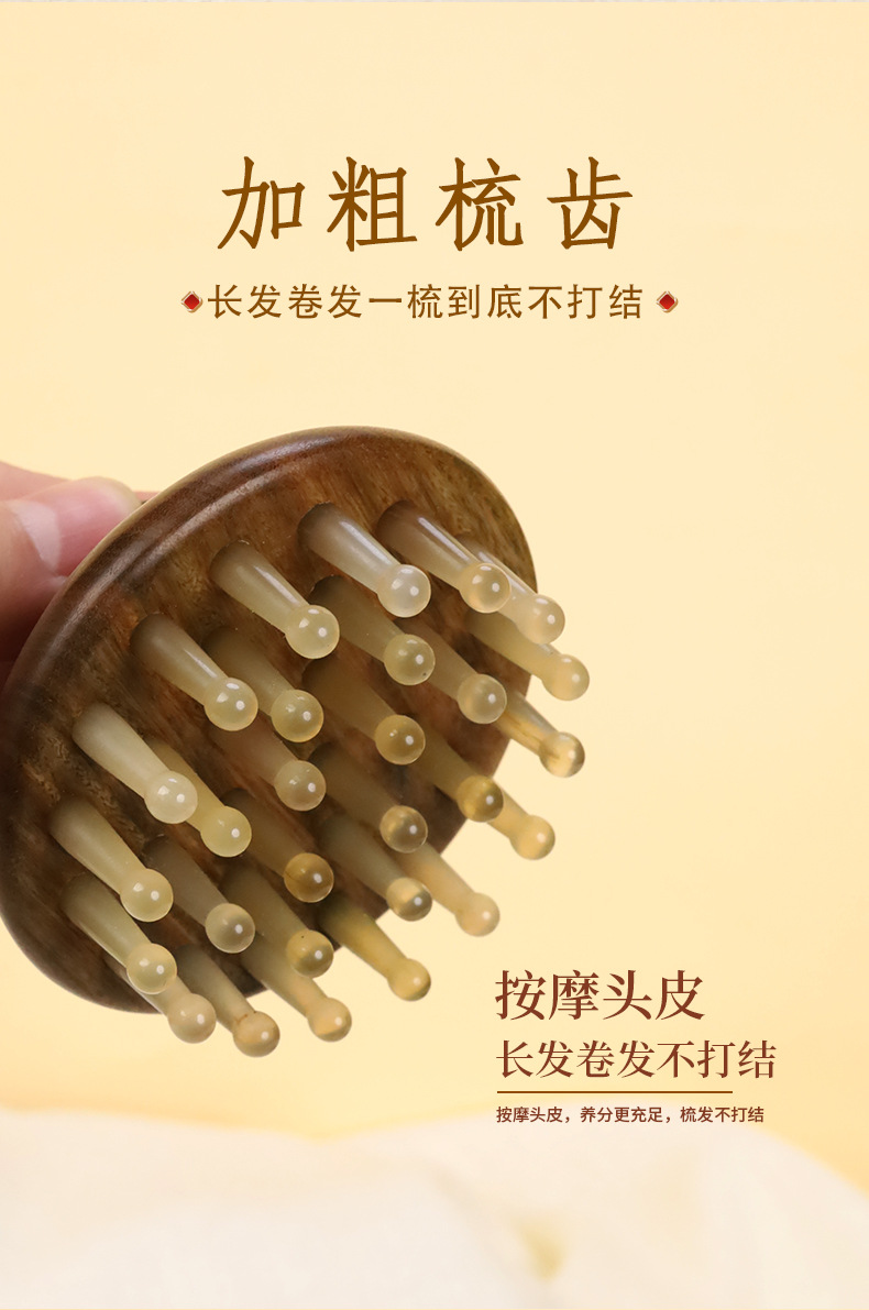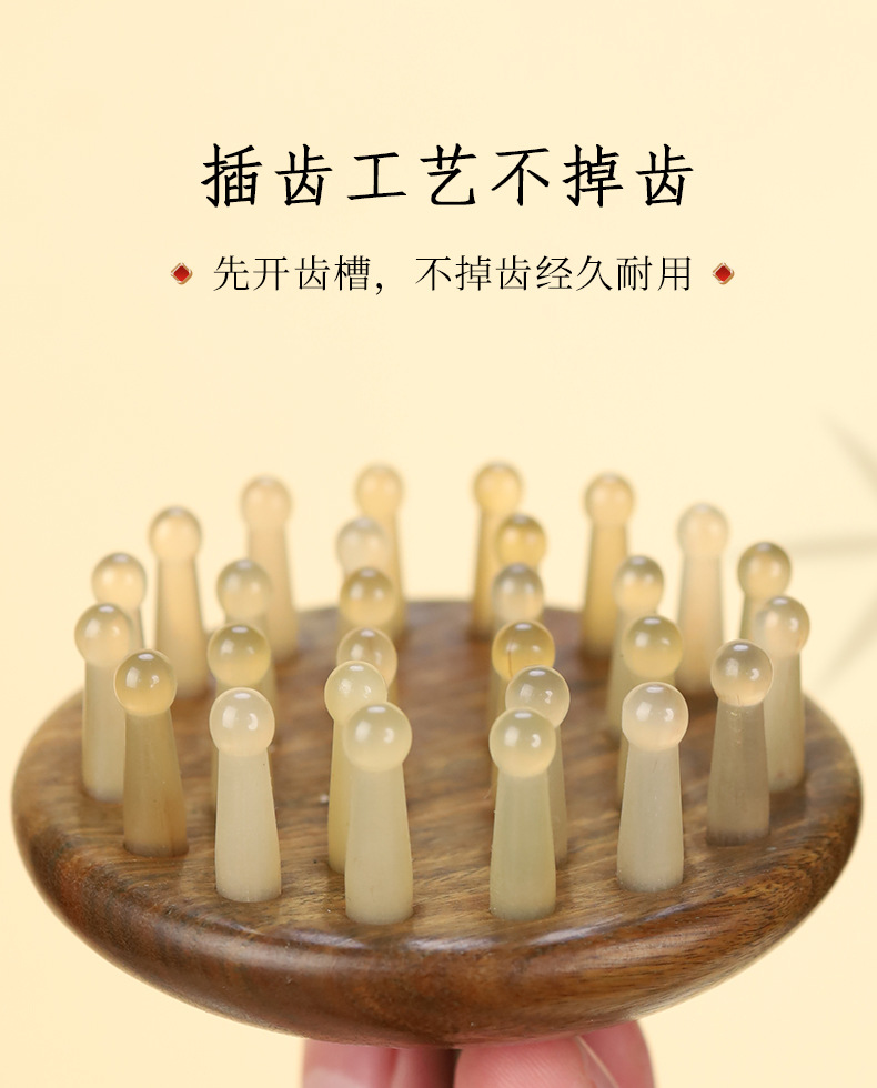 羊角按摩梳绿檀木头部经络28钉圆盘插齿梳指环梳按摩头皮养发