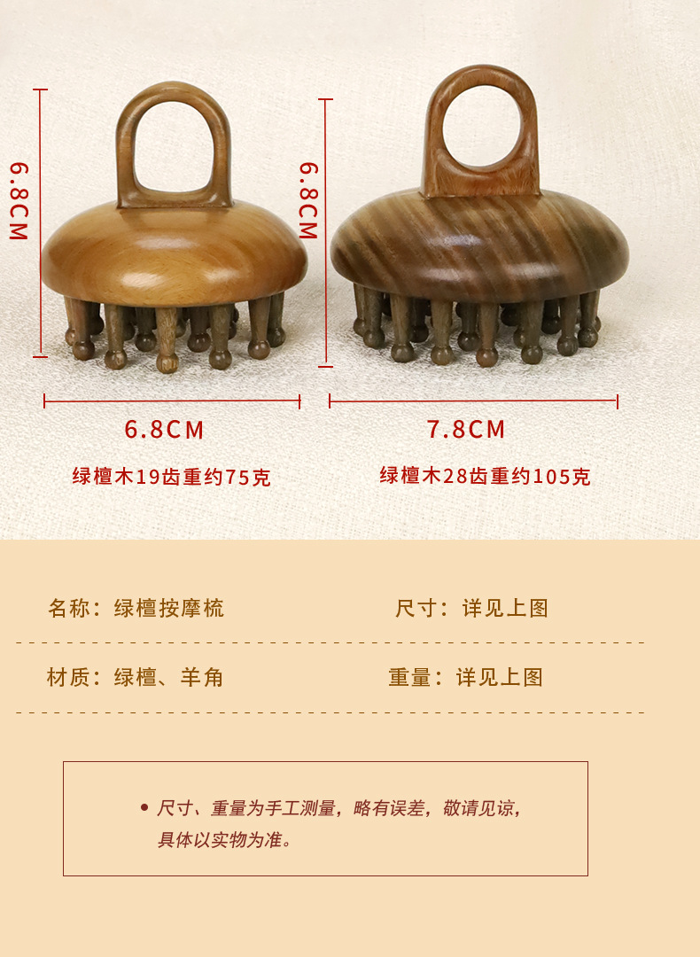 颜色 绿檀羊角齿19钉,绿檀羊角齿28钉,绿檀(梳齿同料)19钉,绿檀(梳齿同料)28钉