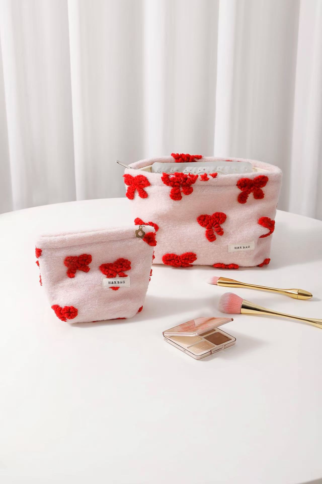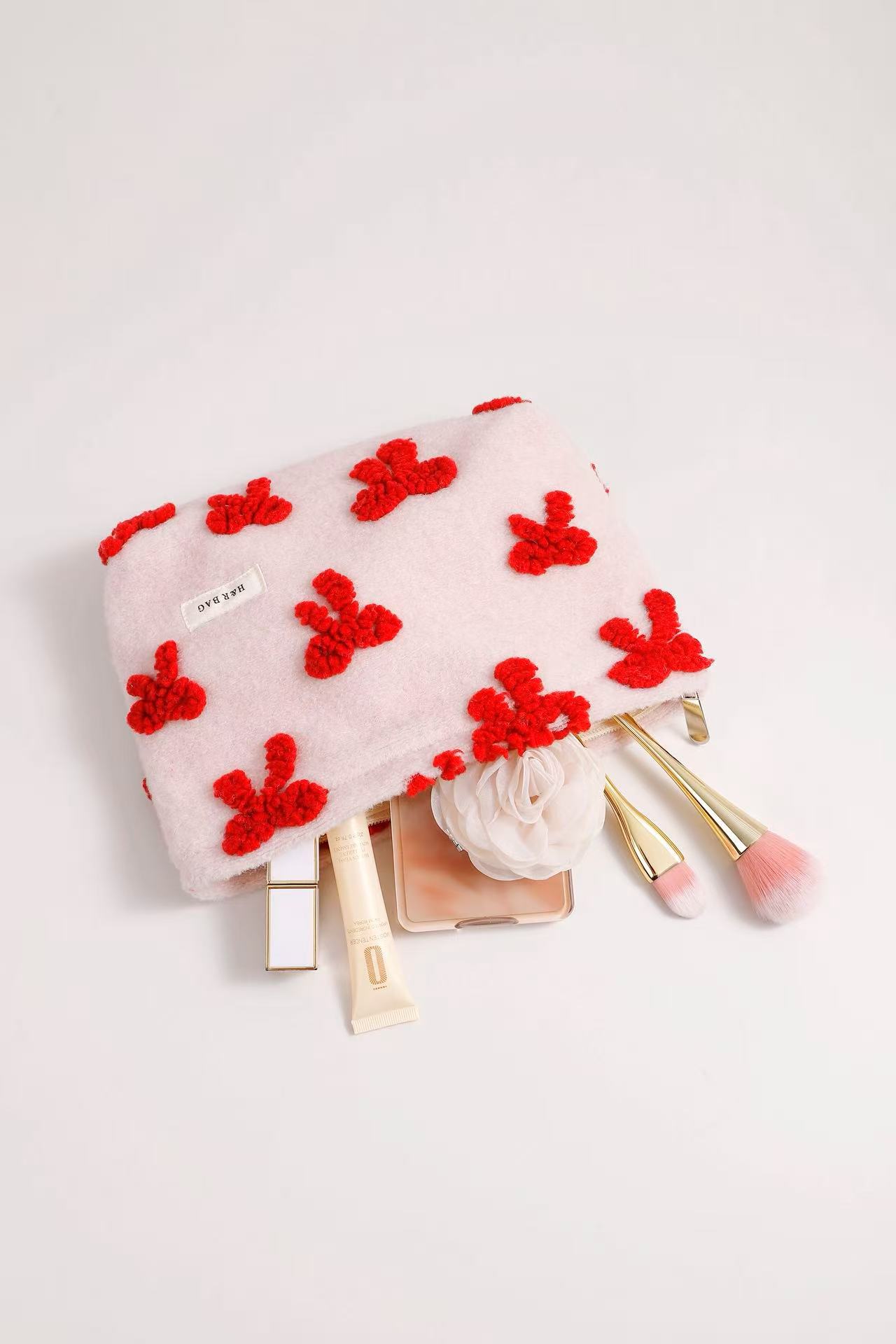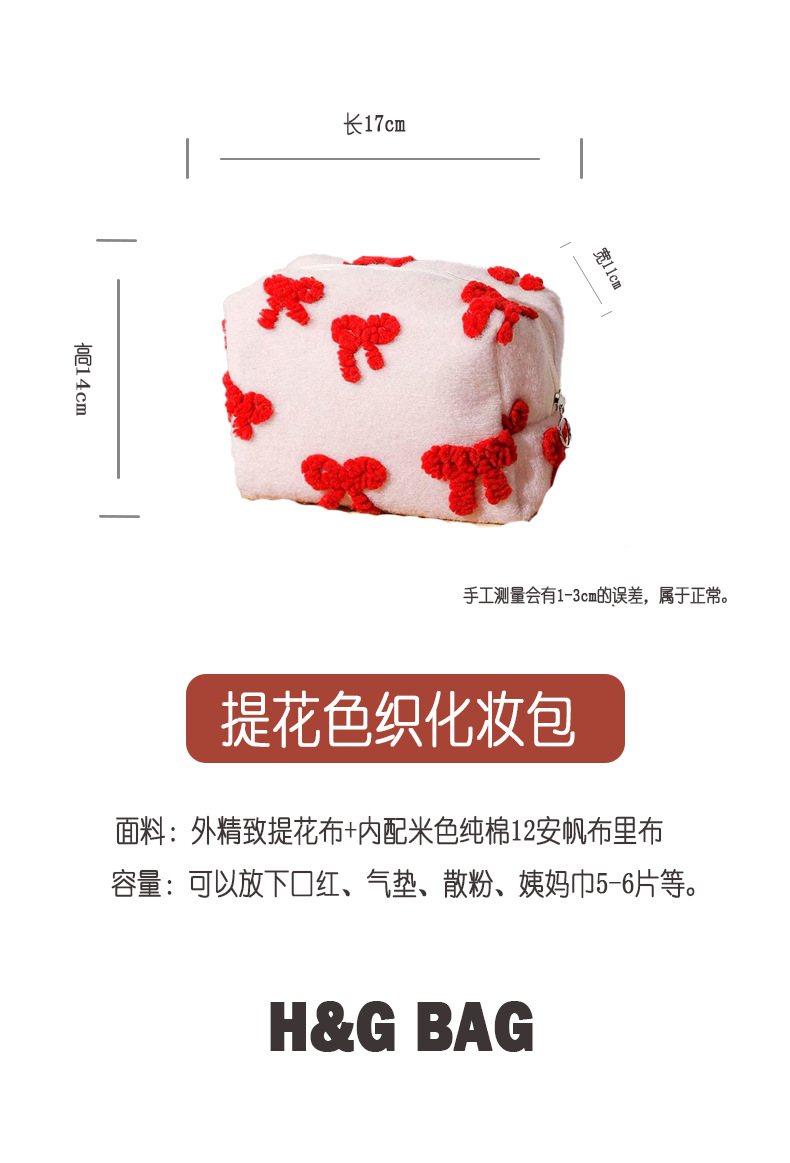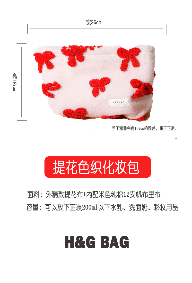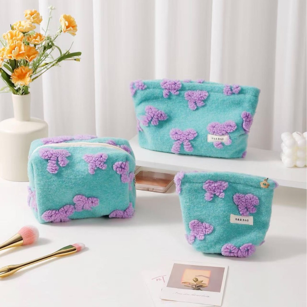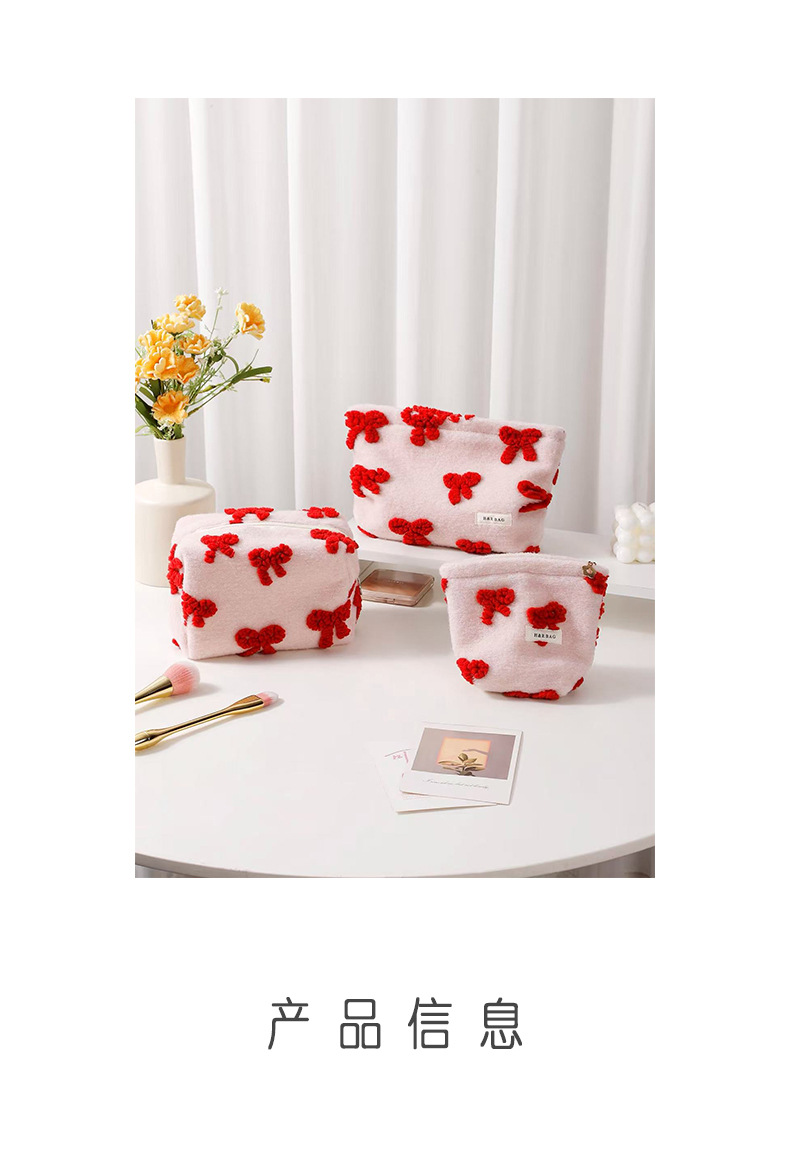 新しい甘いガーリーピンクぬいぐるみリボン化粧品バッグポータブルスキンケア製品収納袋クラッチバッグ