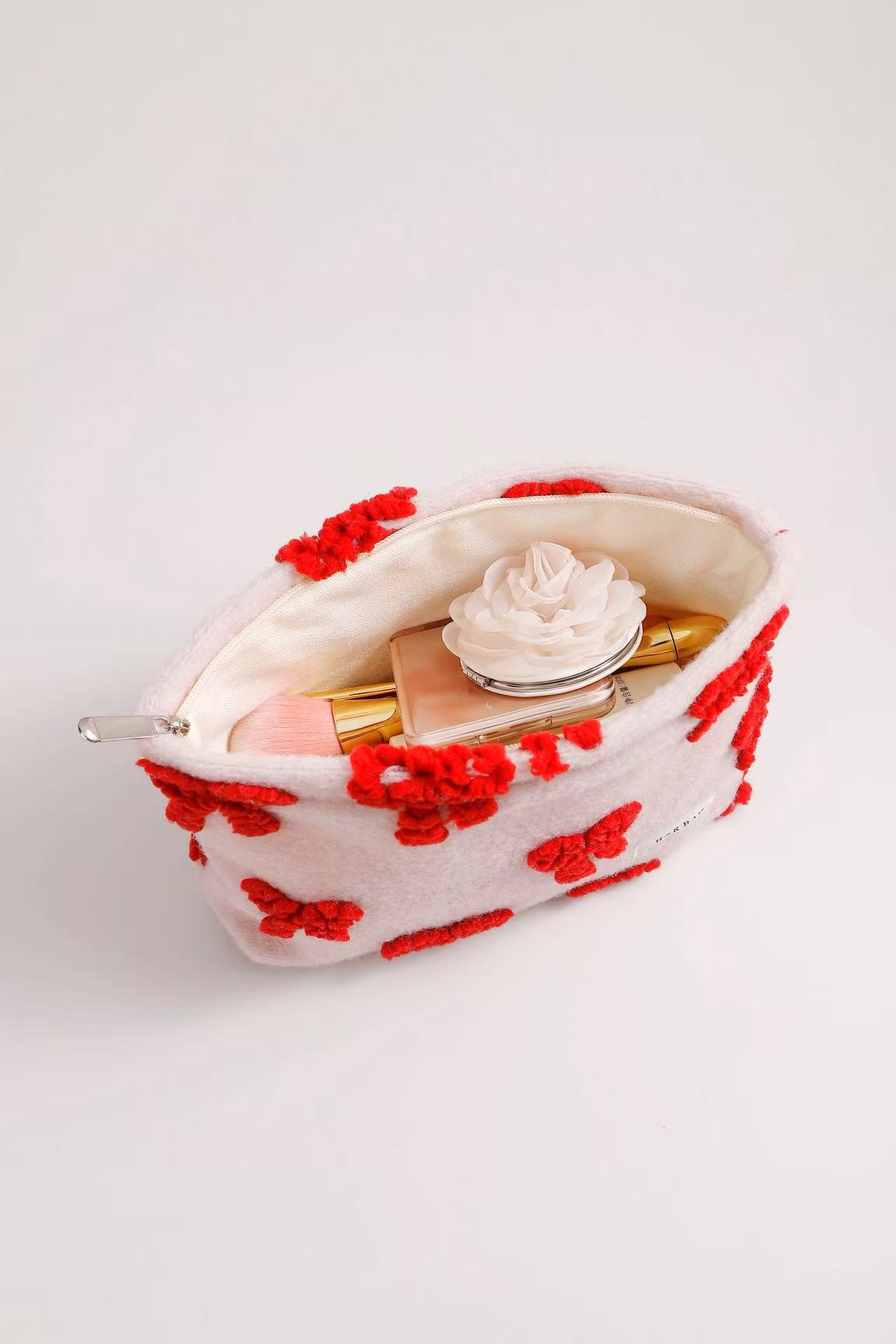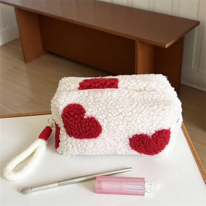 爱心毛绒笔袋化妆包大容量高颜值旅行好物收纳包便携可爱洗漱包