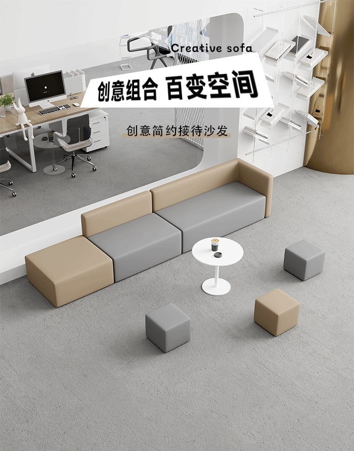 オフィス研修機関受付フロント待合室商談受付クリエイティブな特殊形状の組み合わせコーヒーテーブルソファ