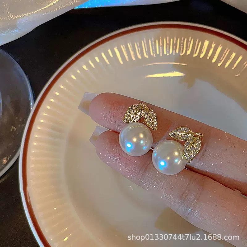 パールフルダイヤモンドリーフイヤリング s925 シルバー針フレンチセレブスタイルハイエンドライトラグジュアリーファッションイヤリング女性用