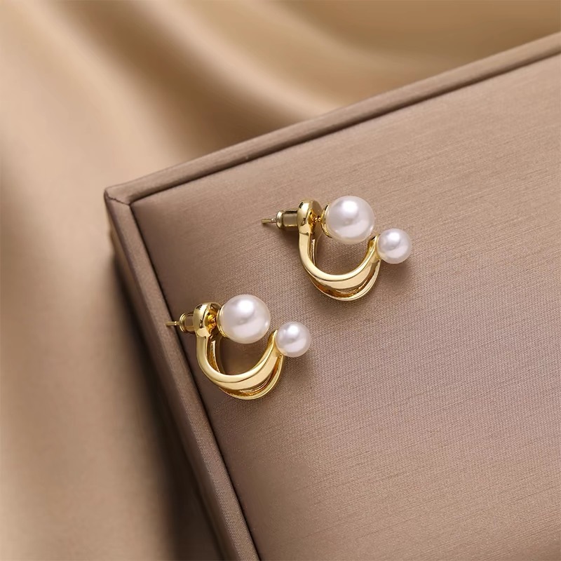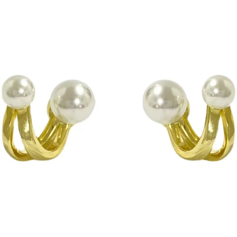 ダブルC真珠イヤリング女性ins冷淡な風気質甘美な1つのピアスをつけてレトロな大衆デザイン感耳飾り
