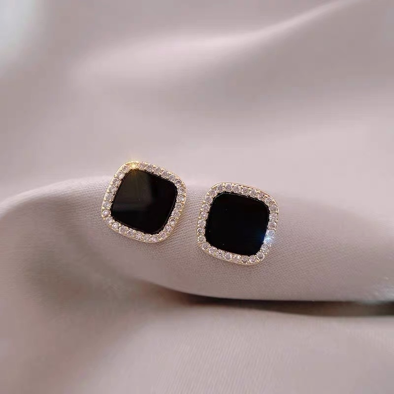 S925银针时尚简约几何耳钉女个性时尚黑色耳环小众设计感气质耳饰