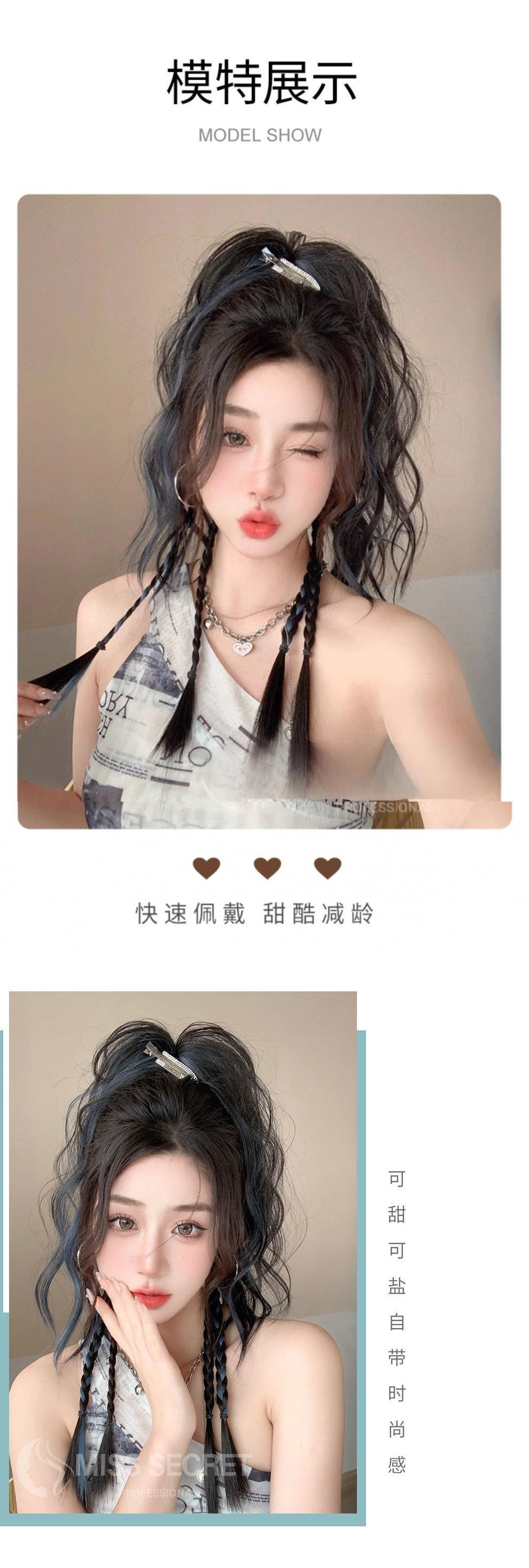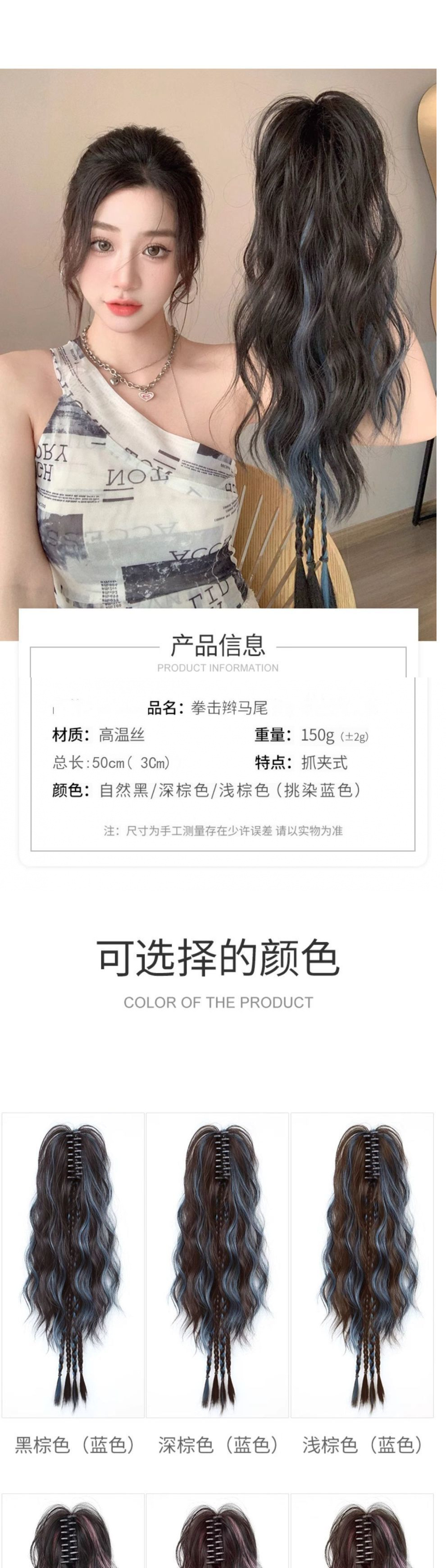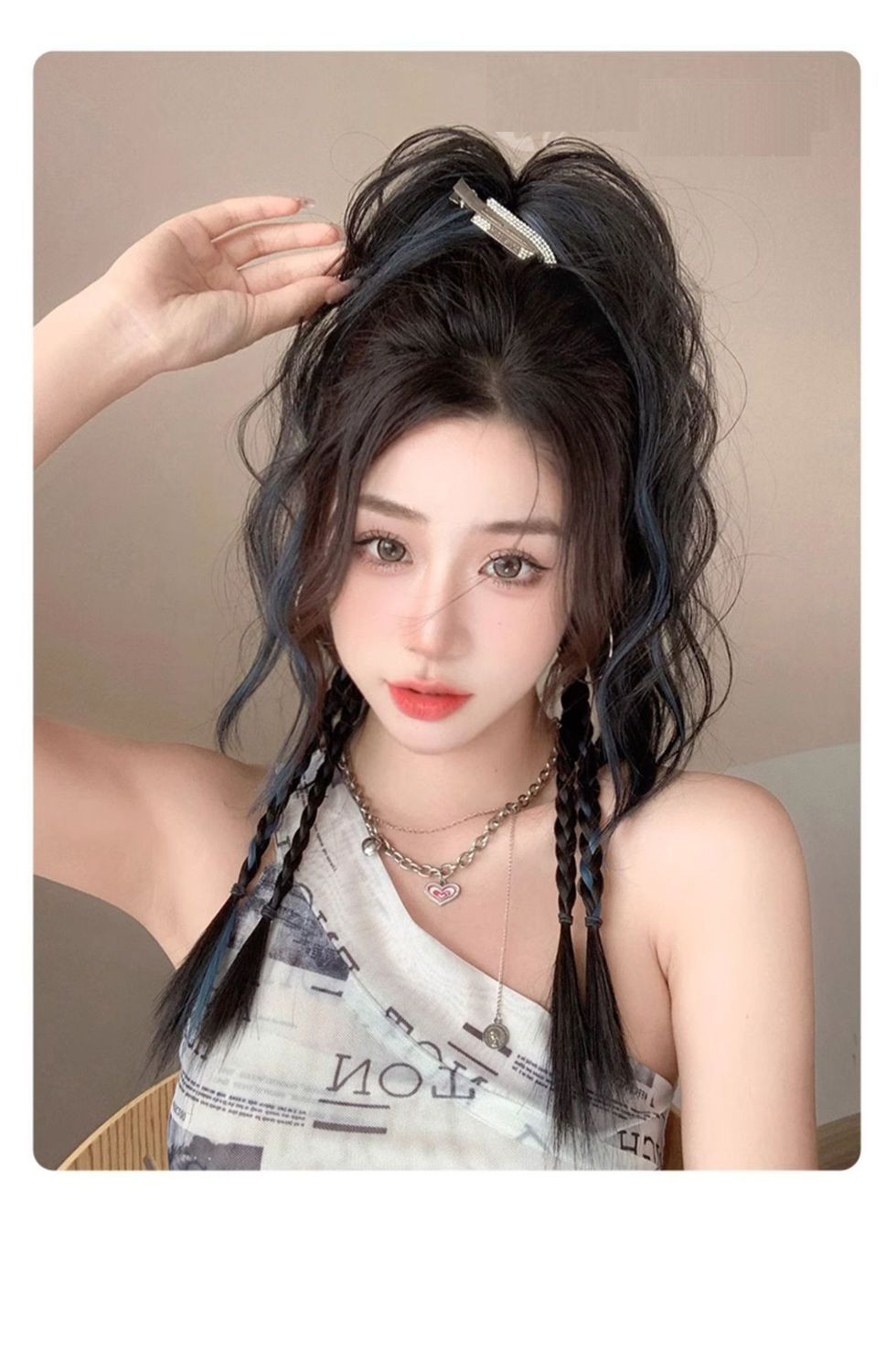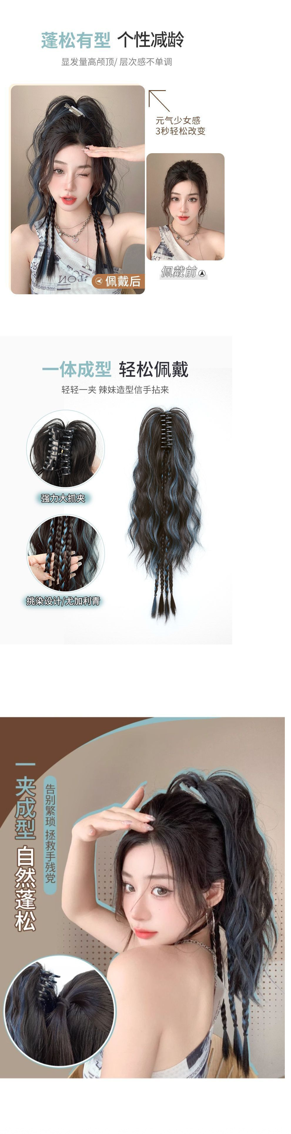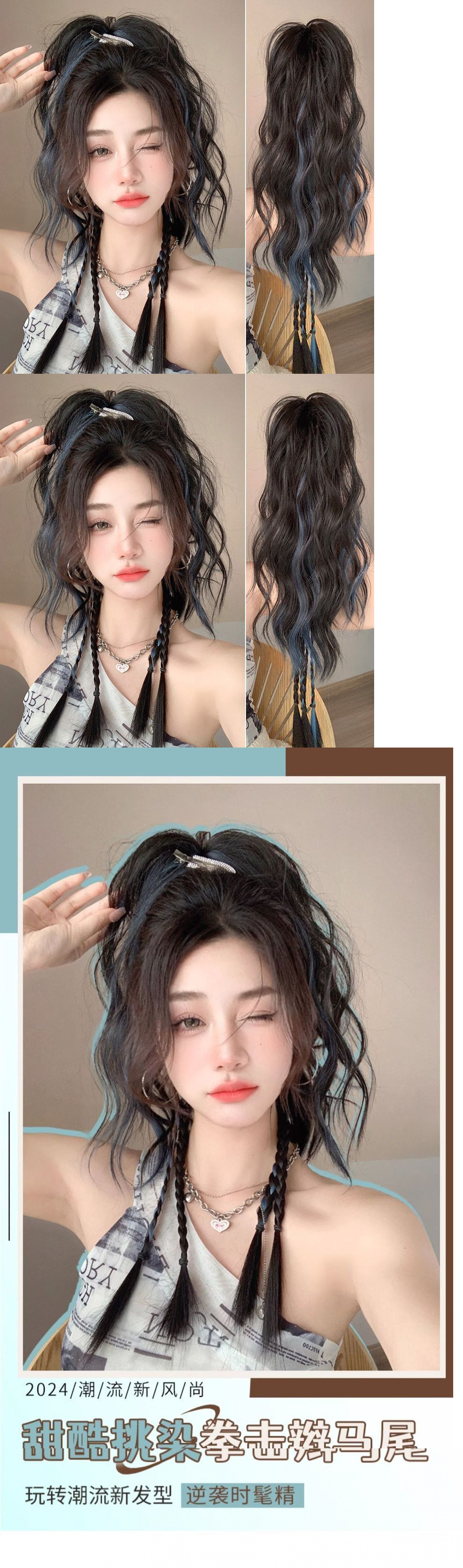 女性用ウィッグ、ハイポニーテールクリップ、人工毛、甘いハイライト、ボクシング三つ編み、滝、ハーフポニーテール、カラーウィッグ三つ編み