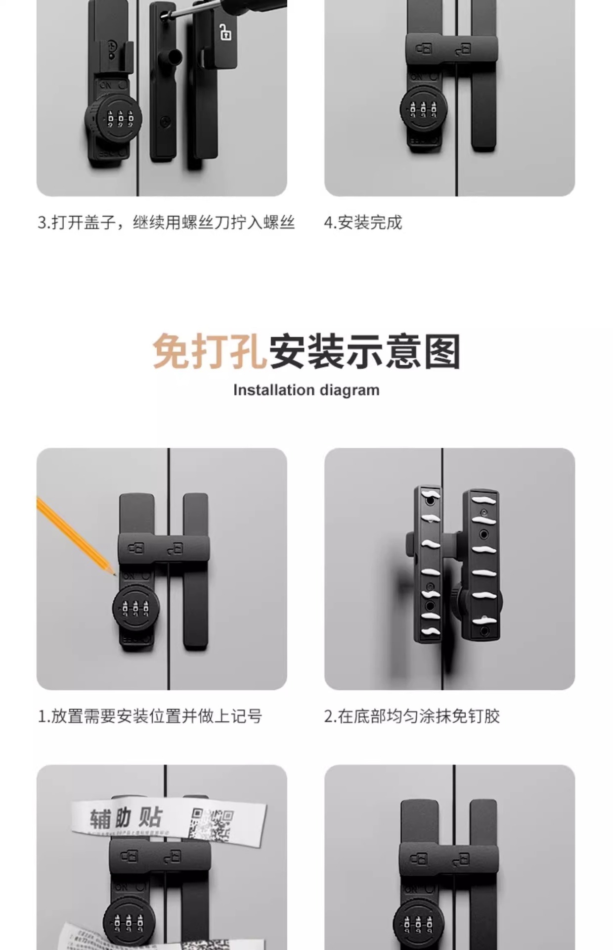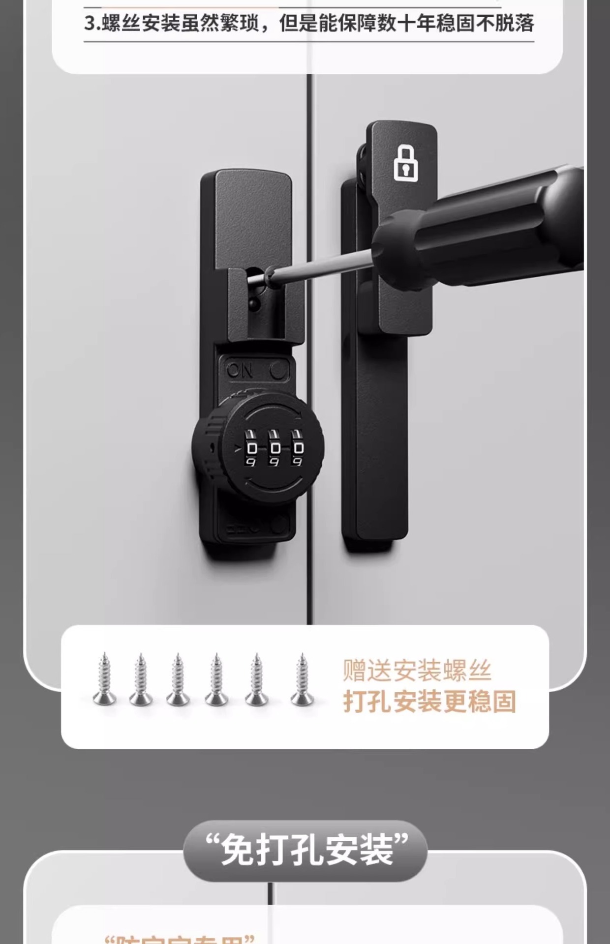 のこぎりロックガラスロック押し引きキャビネットドアロック展示キャビネットカウンターキャビネットロック移動ドアロックショーウインドー穴なしパスワードロック