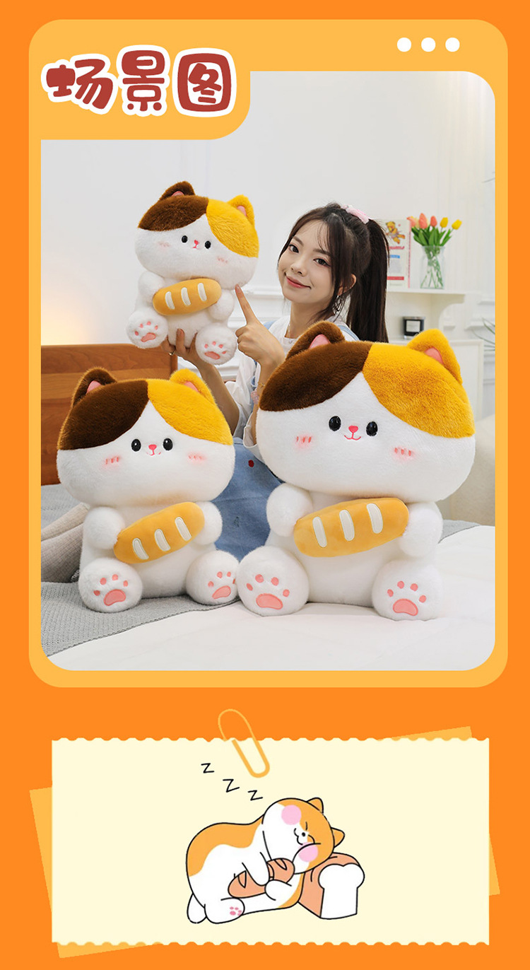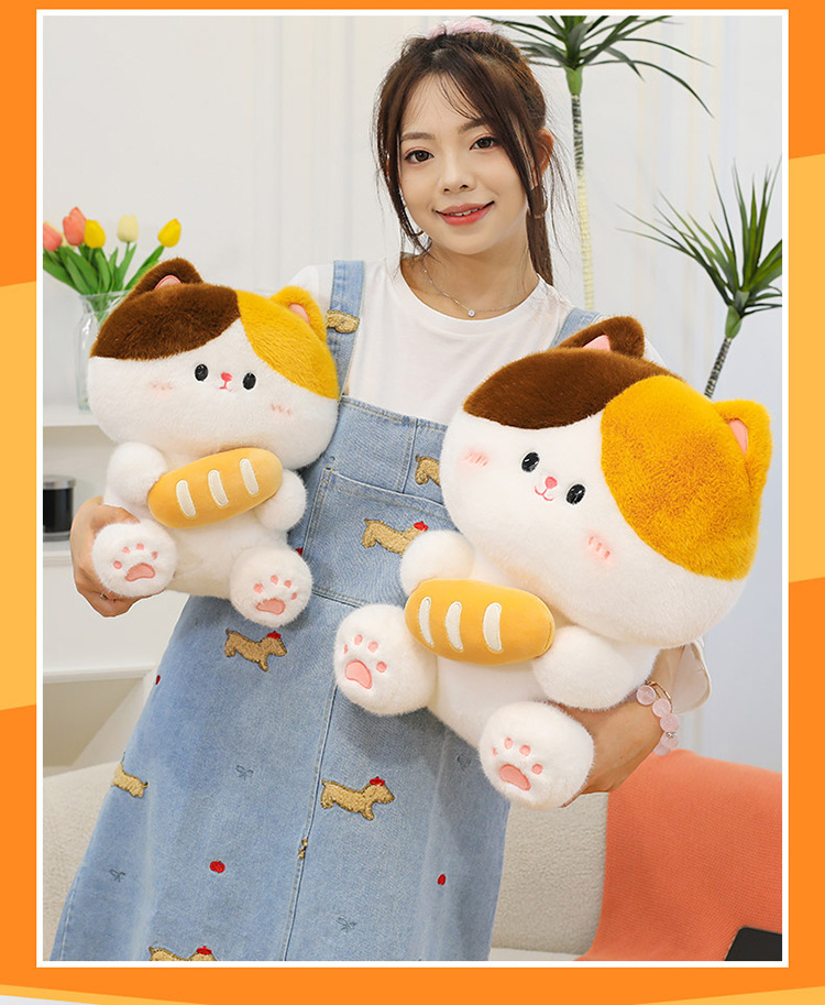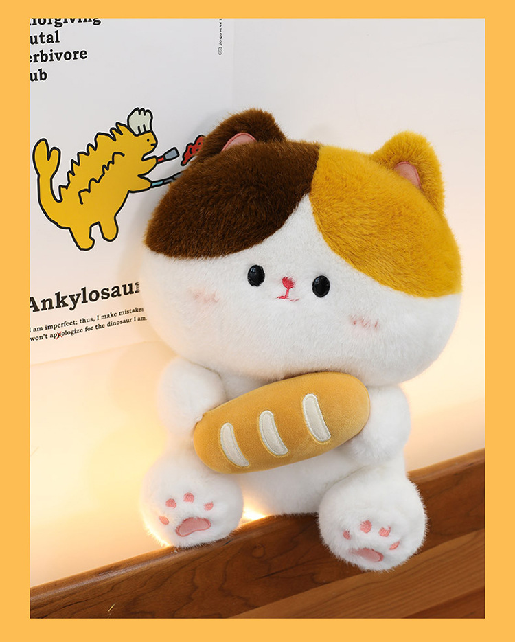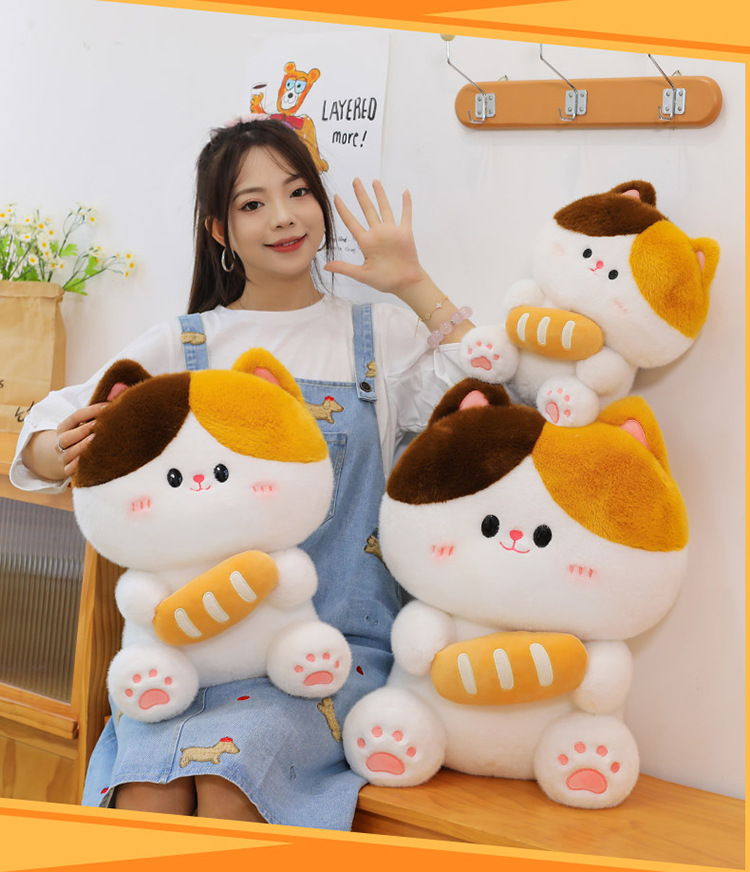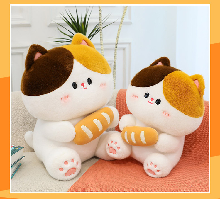 可爱抱面包的小猫咪软萌玩偶宝宝安抚治愈玩偶客卧摆件儿童礼物