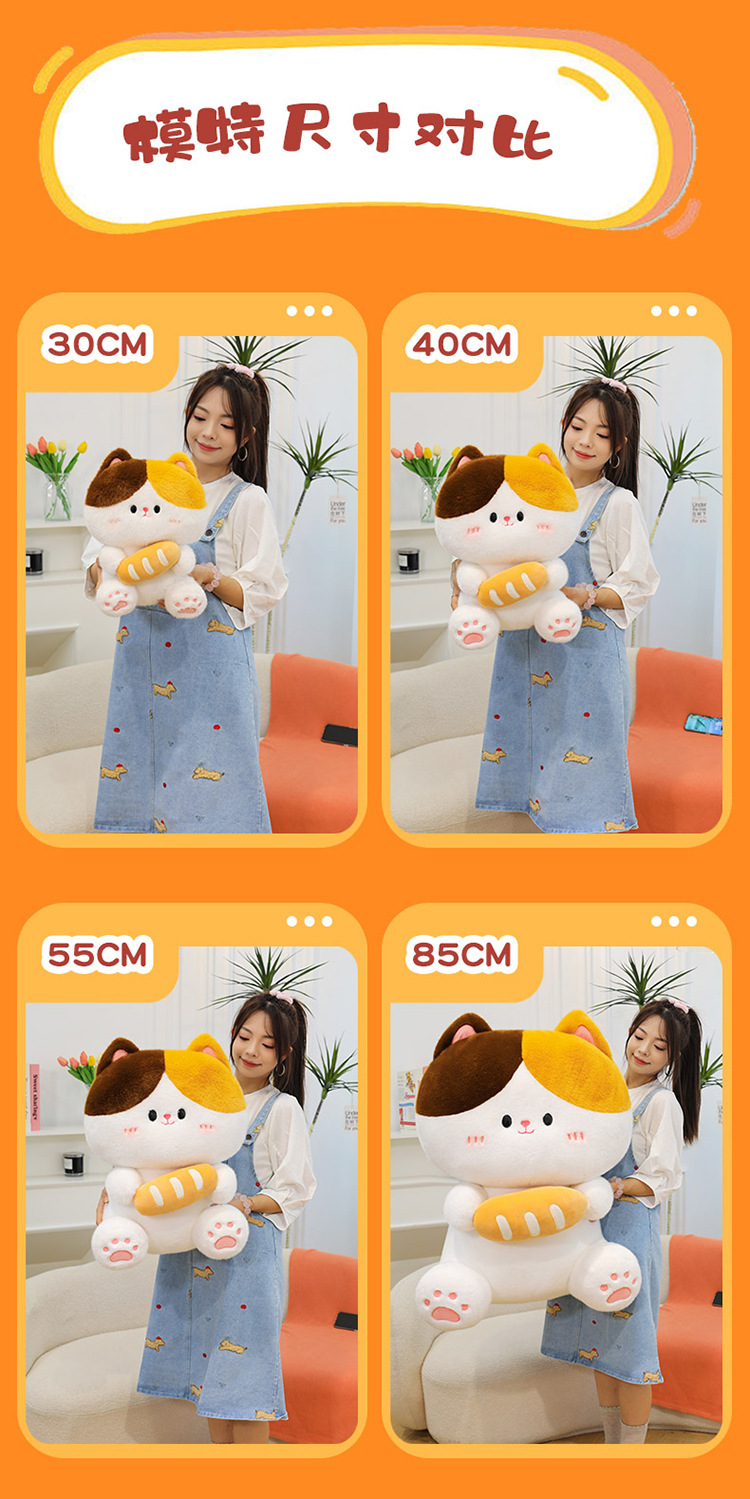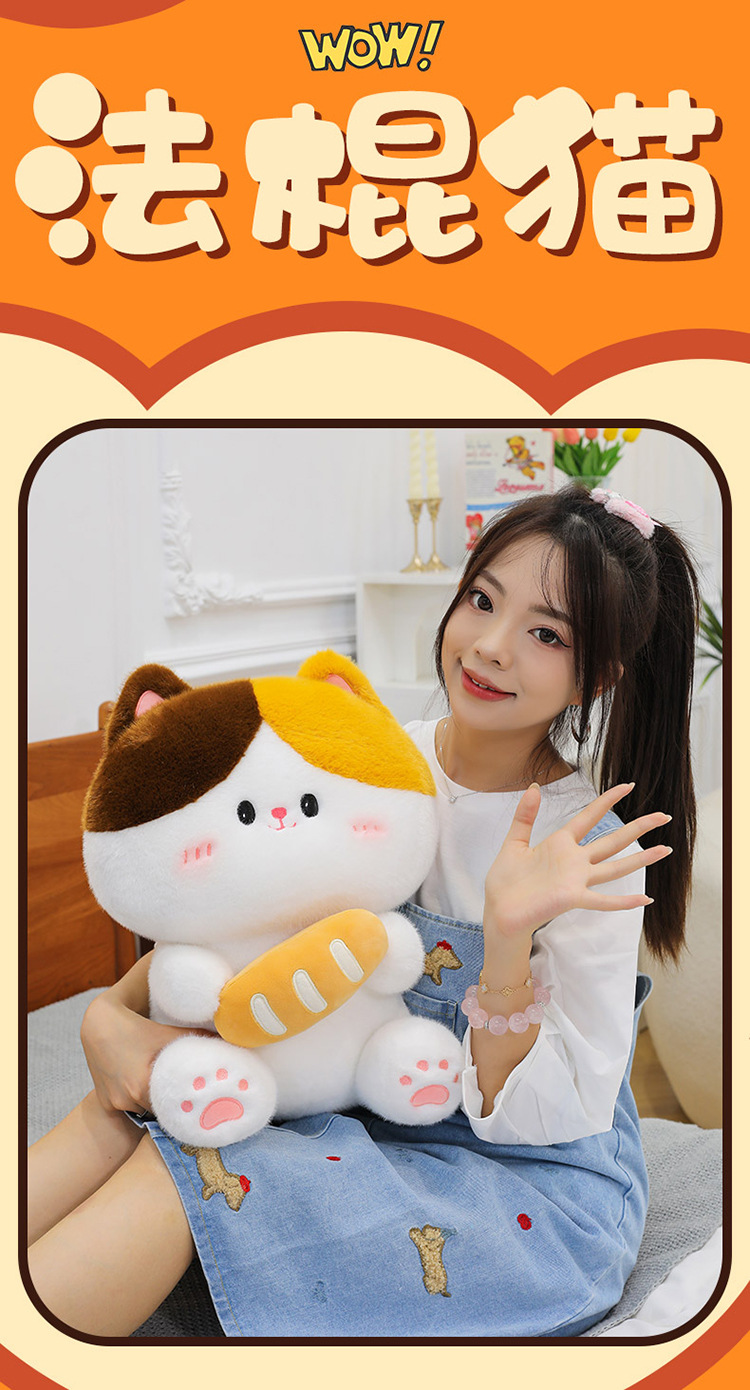 可爱法棍面包猫毛绒玩具猫咪公仔儿童安抚玩偶抱枕大号生日礼物女