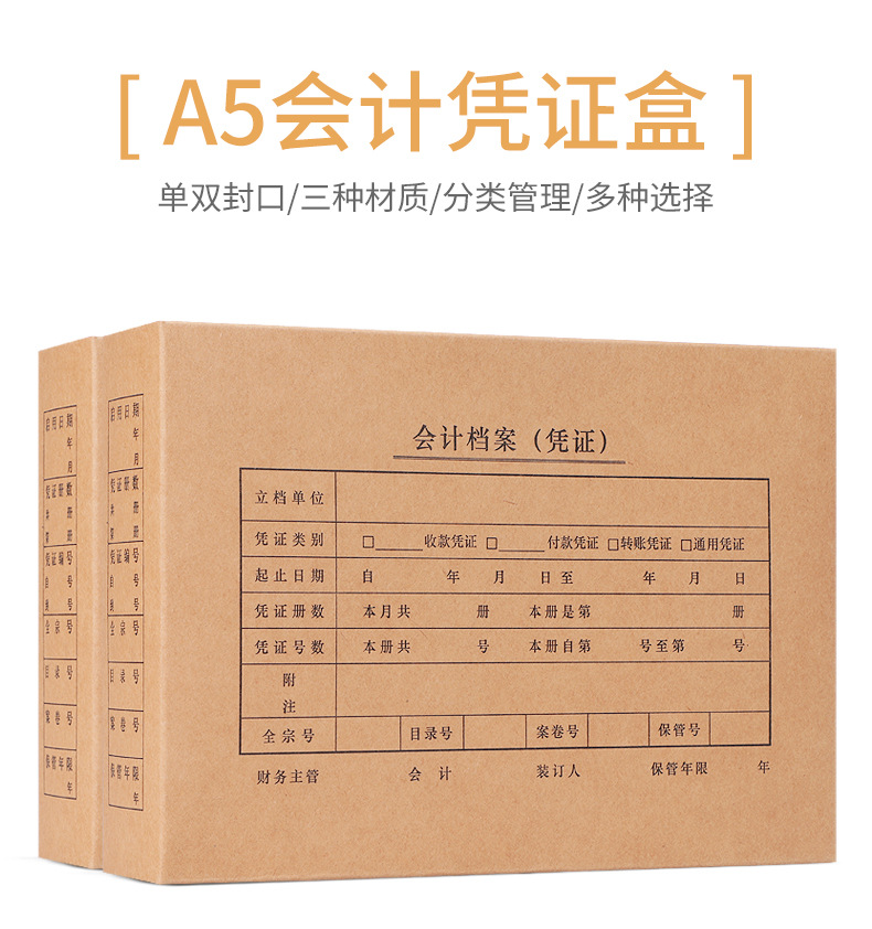 厂家供应A4会计凭证盒横版竖版A5凭证盒加厚各种规格双封口单封口