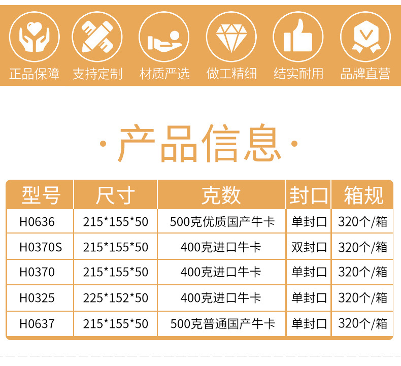 仕様 シングルシール [215×155×50mm] 10枚/普通国産クラフトダンボール H0637,シングルシール [215×155×50mm] 10枚/500g 高級国産クラフトダンボール H0636,シングルシール [215*155*50mm] 10枚/400g 輸入クラフトダンボール H0370,シングルシール [225*155*50mm] 10枚/400g 輸入クラフトダンボール H0325,二重シール [215*155*50mm] 10枚/400g 輸入クラフトダンボール H0370S