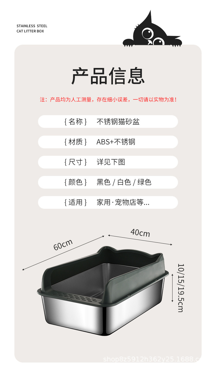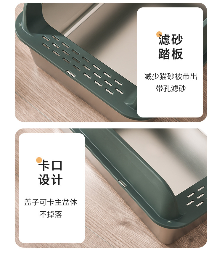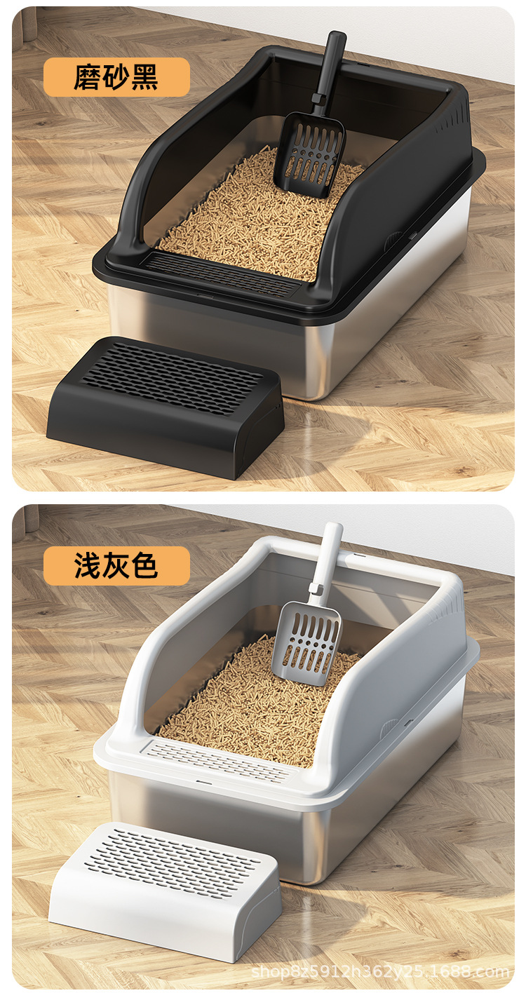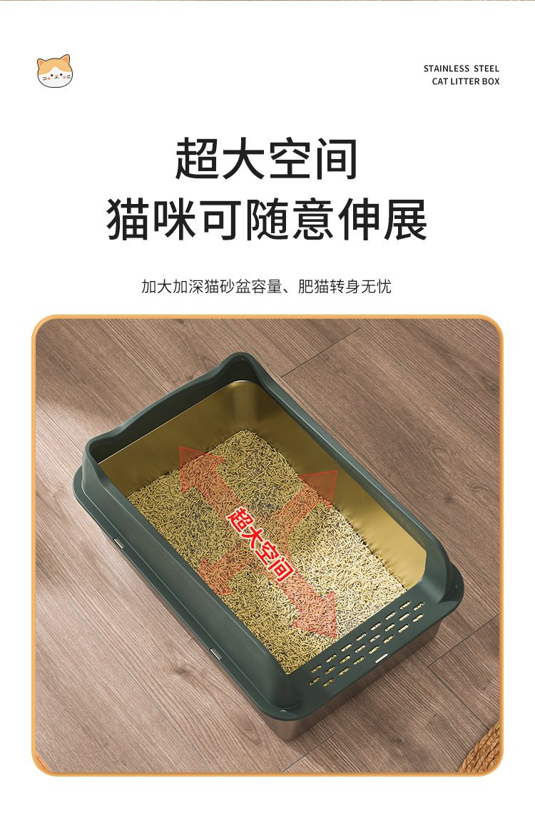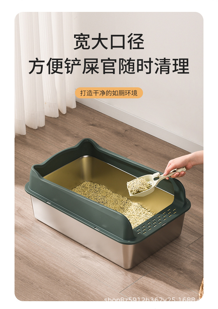 不锈钢猫砂盆亚马逊敞开式防外溅易清洗猫厕所厂家直销半封闭式