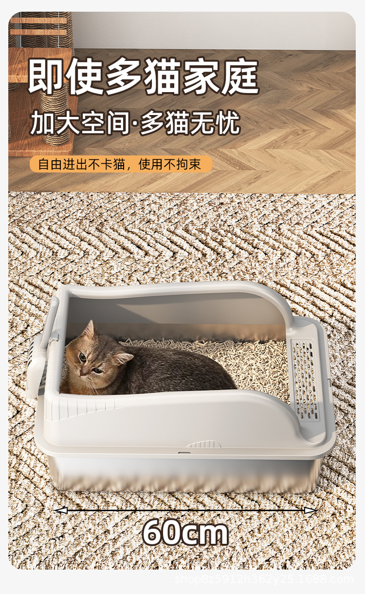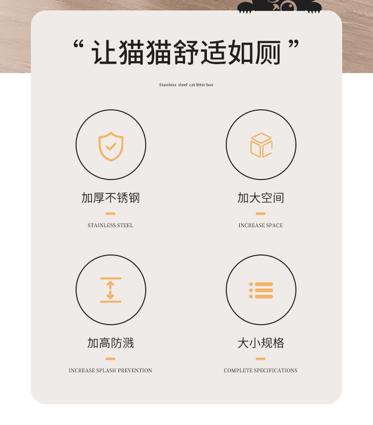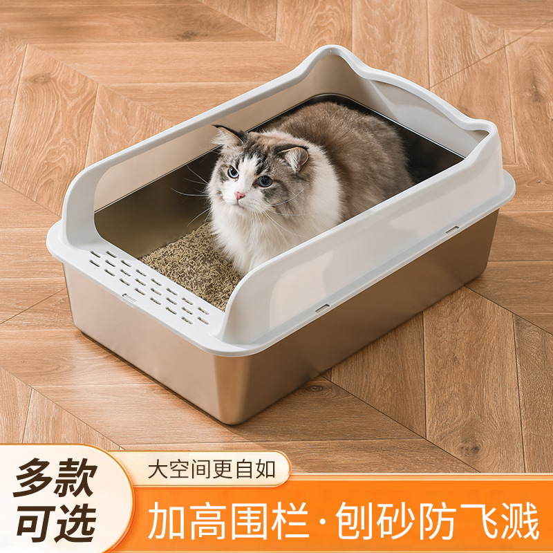 巨无霸高围栏半封闭猫厕所不锈钢防外溅猫屎盆特大猫砂盆宠物用品