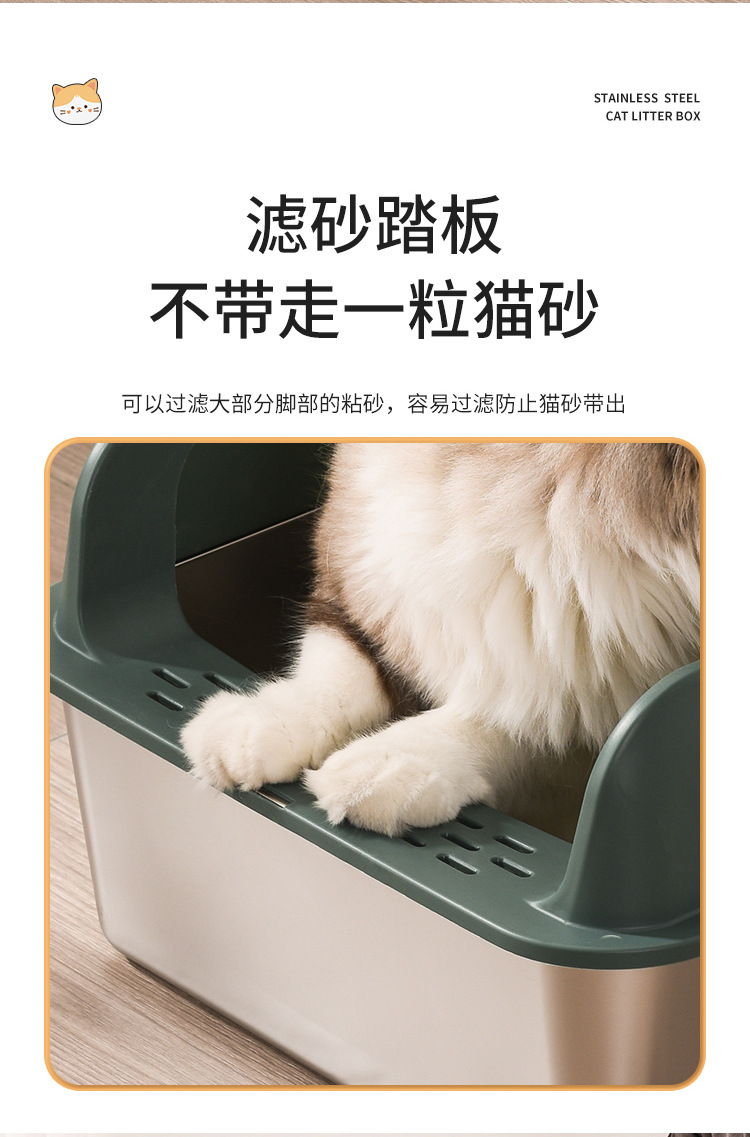 亚马逊特大号不锈钢猫砂盆大容量高围栏防带出防外溅半封闭猫厕所