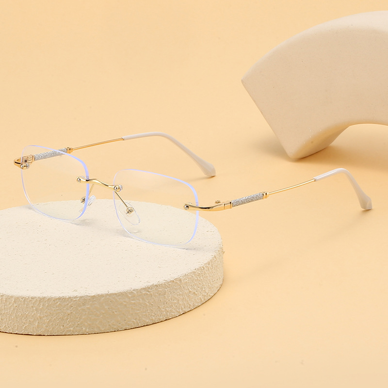 女性用レトロメタルスクエアフレームレス近視メガネ、男性用ブルーライト防止フラットメガネ、ファッショナブルで多用途なフレームレスメガネフレーム