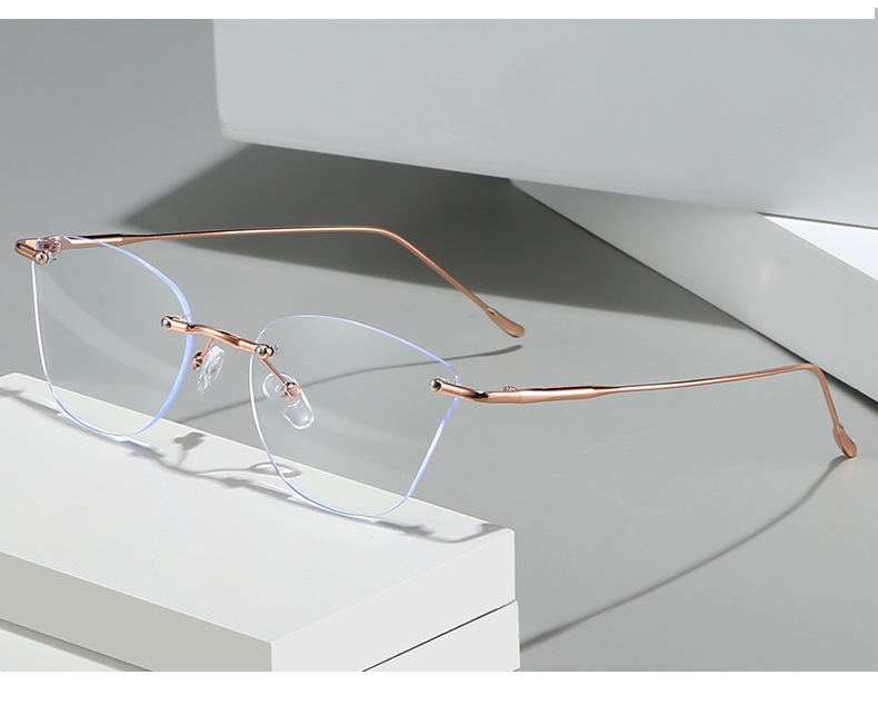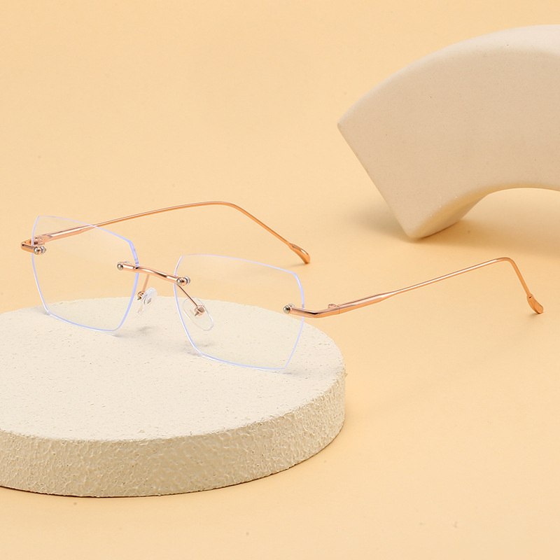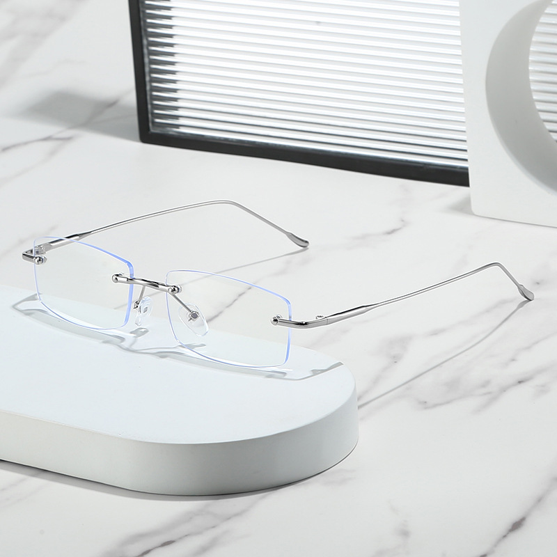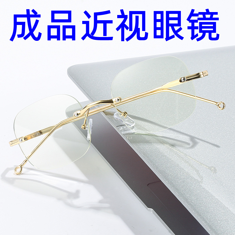 メンズ超軽量フレームレスメガネフレーム卸売近視メガネフレームスクエアメガネ完成品度数付き近視鏡エッジカット