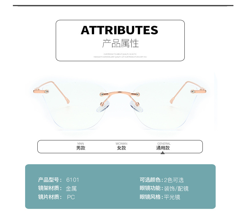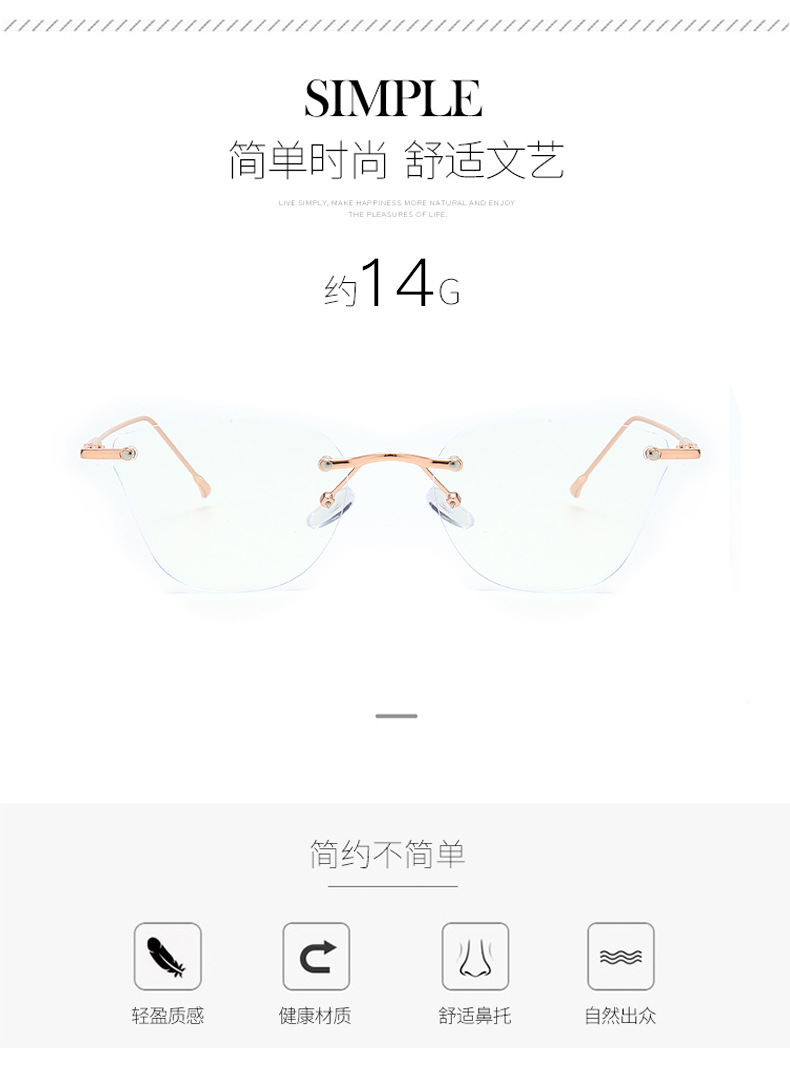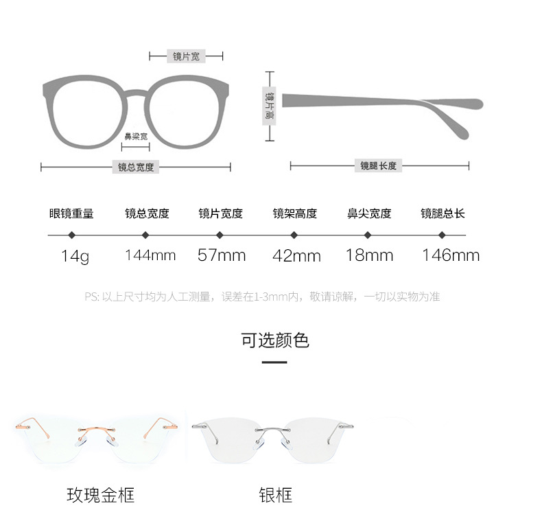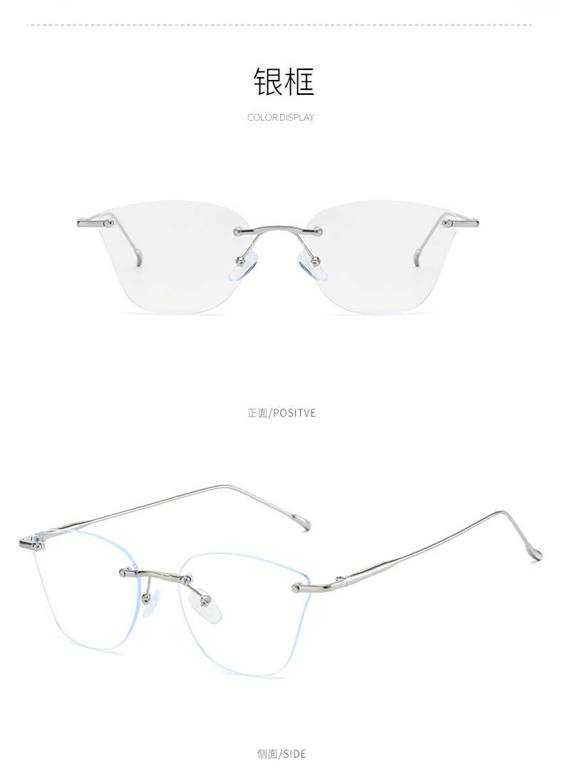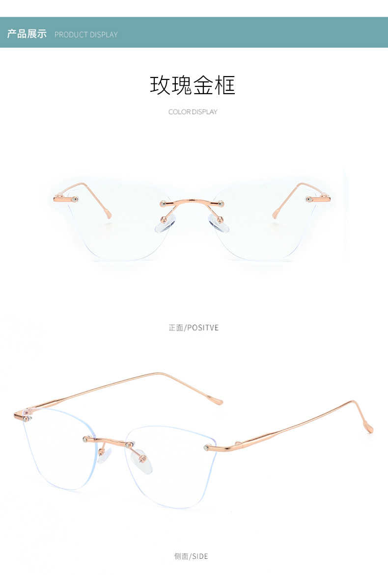 新款时尚无边框切边眼镜框素颜百搭女近视眼镜框男防蓝光平光镜
