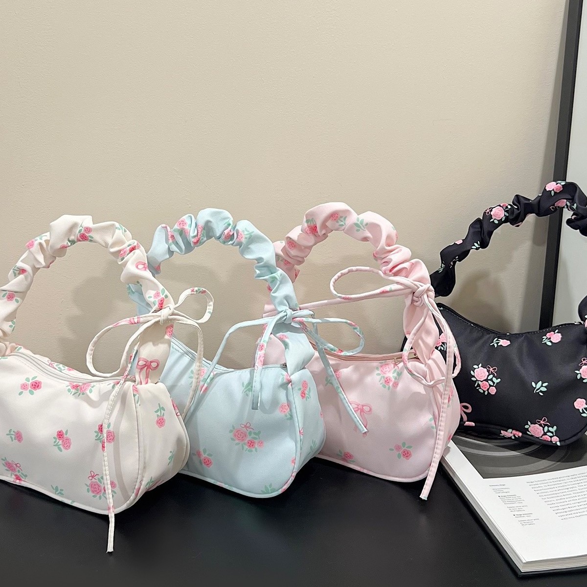 温柔甜美抽绳单肩包2025新款高颜值百搭斜跨包小碎花帆布包包热卖