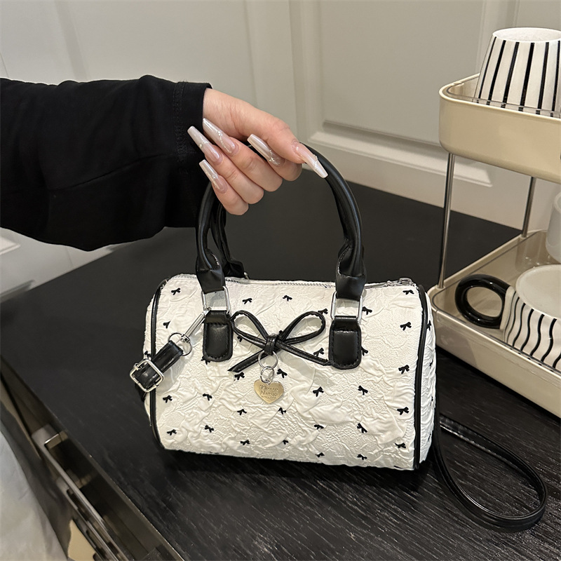甜美蝴蝶结泡泡纱波士顿包包女韩系甜美少女手提包百搭单肩斜挎包