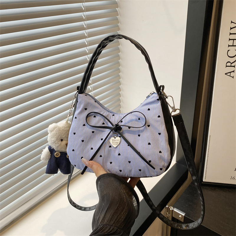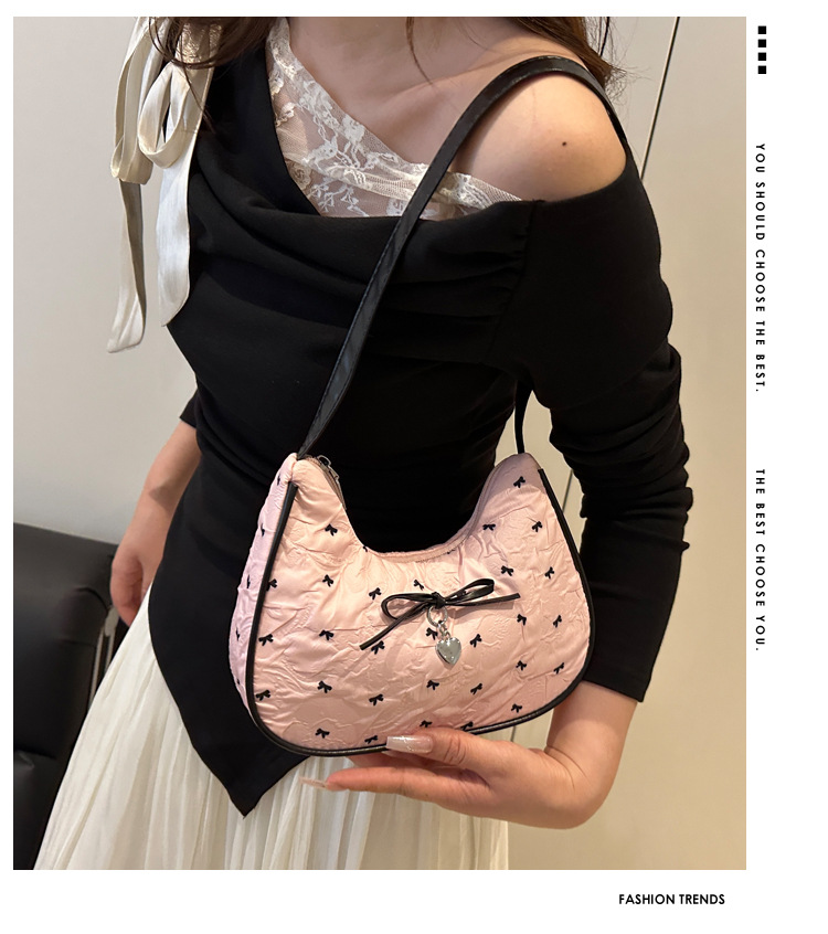 小众撞色女包2025新款甜美蝴蝶结斜挎包时尚甜酷辣妹手提新月小包