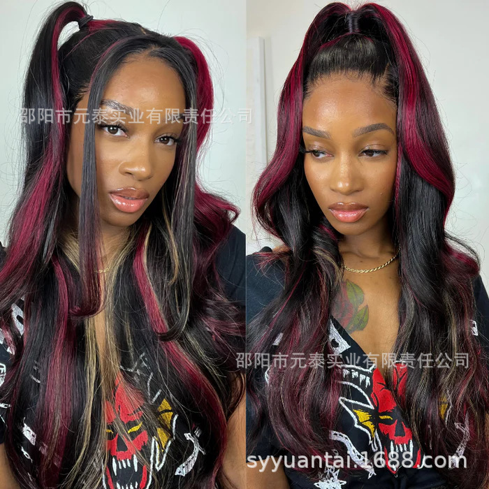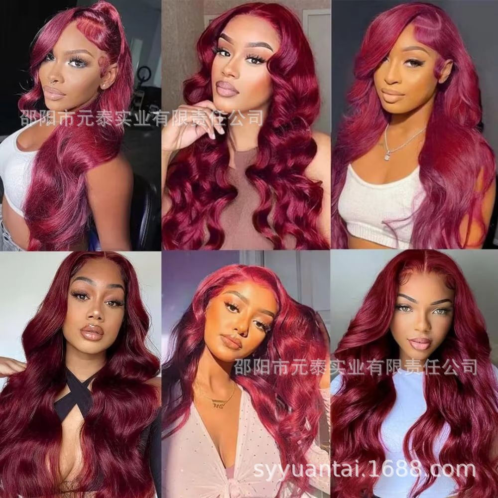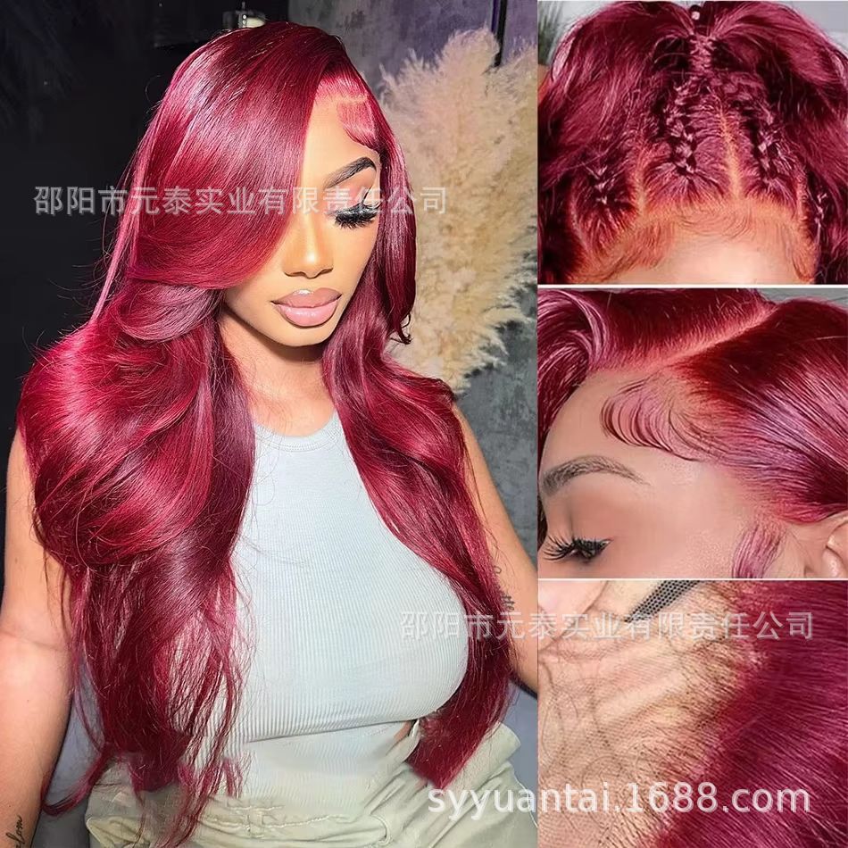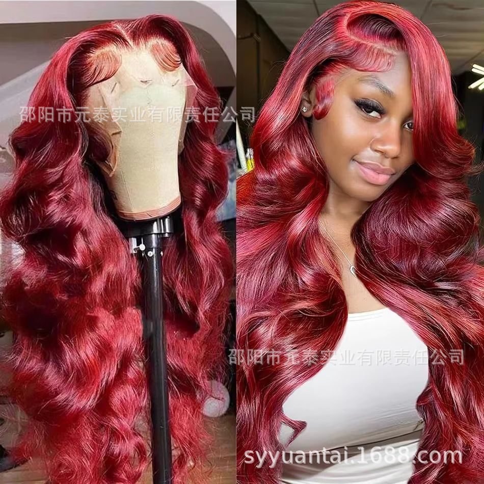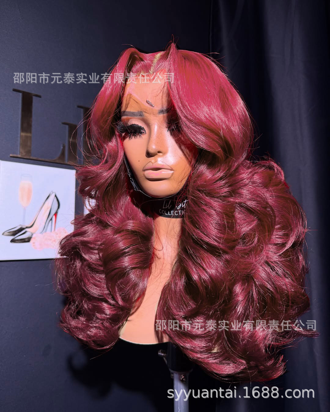 13x6 レースフロント バーガンディ合成グルーレスウィッグ卸売