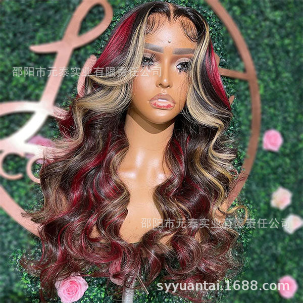 ヨーロッパとアメリカのファッションウィッグ混合色ビッグウェーブ化学繊維フロントレースウィッグヘッドギアロング巻き毛ウィッグメーカー販売